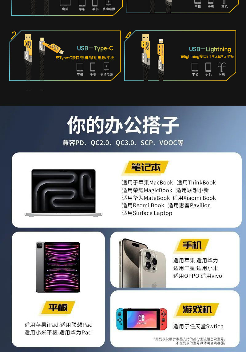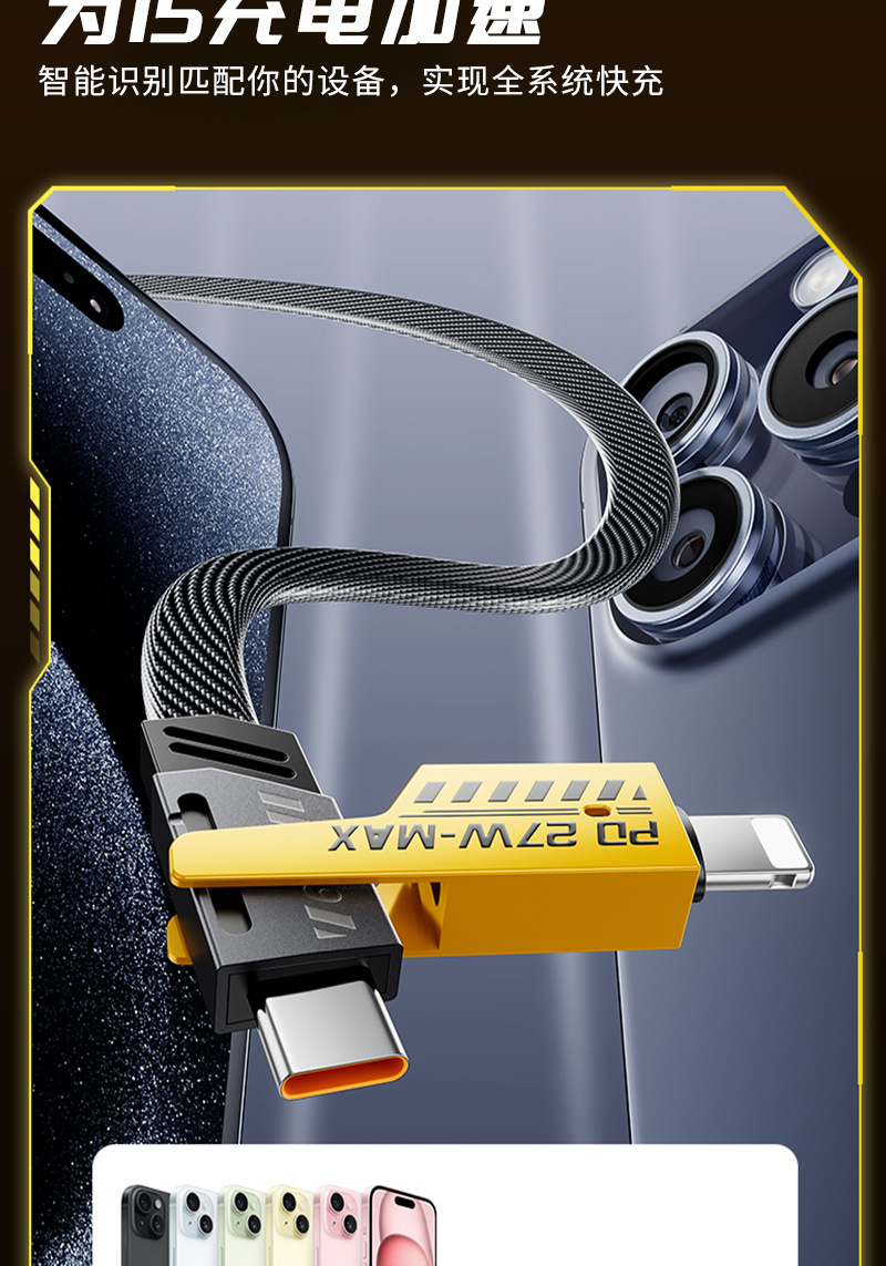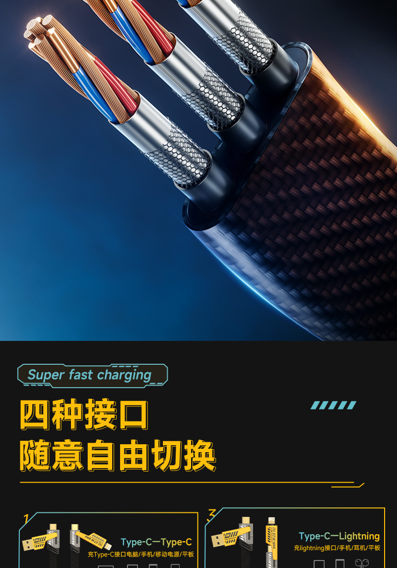 65W Mecha 4-in-1 Fast Charging Cable Huawei Apple Type-C
