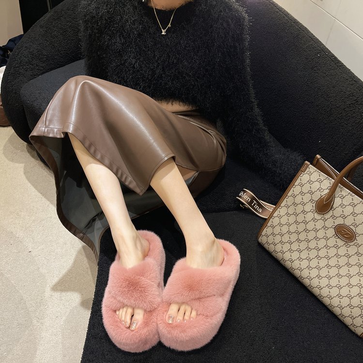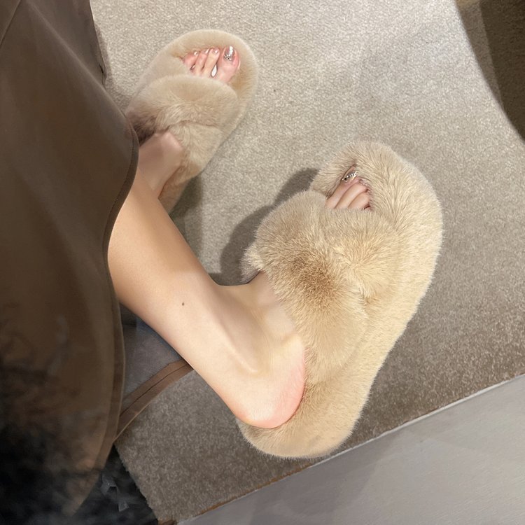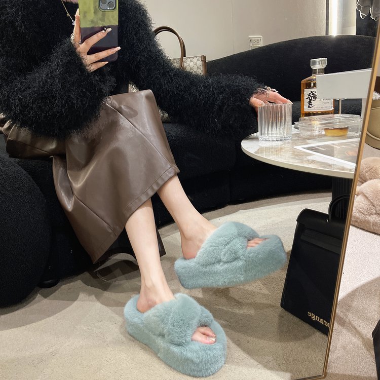7Cm thick-bottomed fluffy slippers women