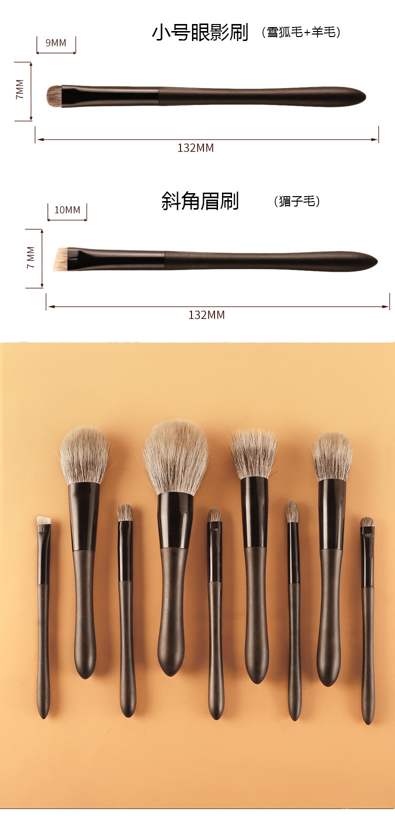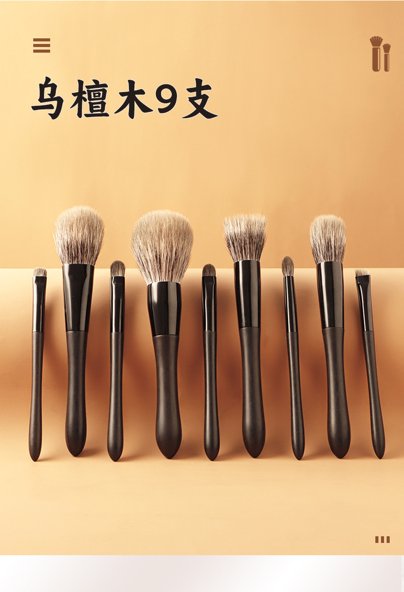 9-Piece Ebony Wood Animal Hair Makeup Brush Set