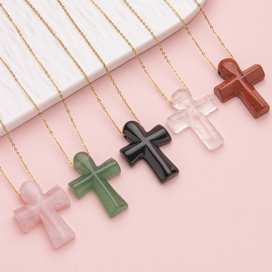 Agate Cross Pendant Stainless Steel Pendant Necklace
