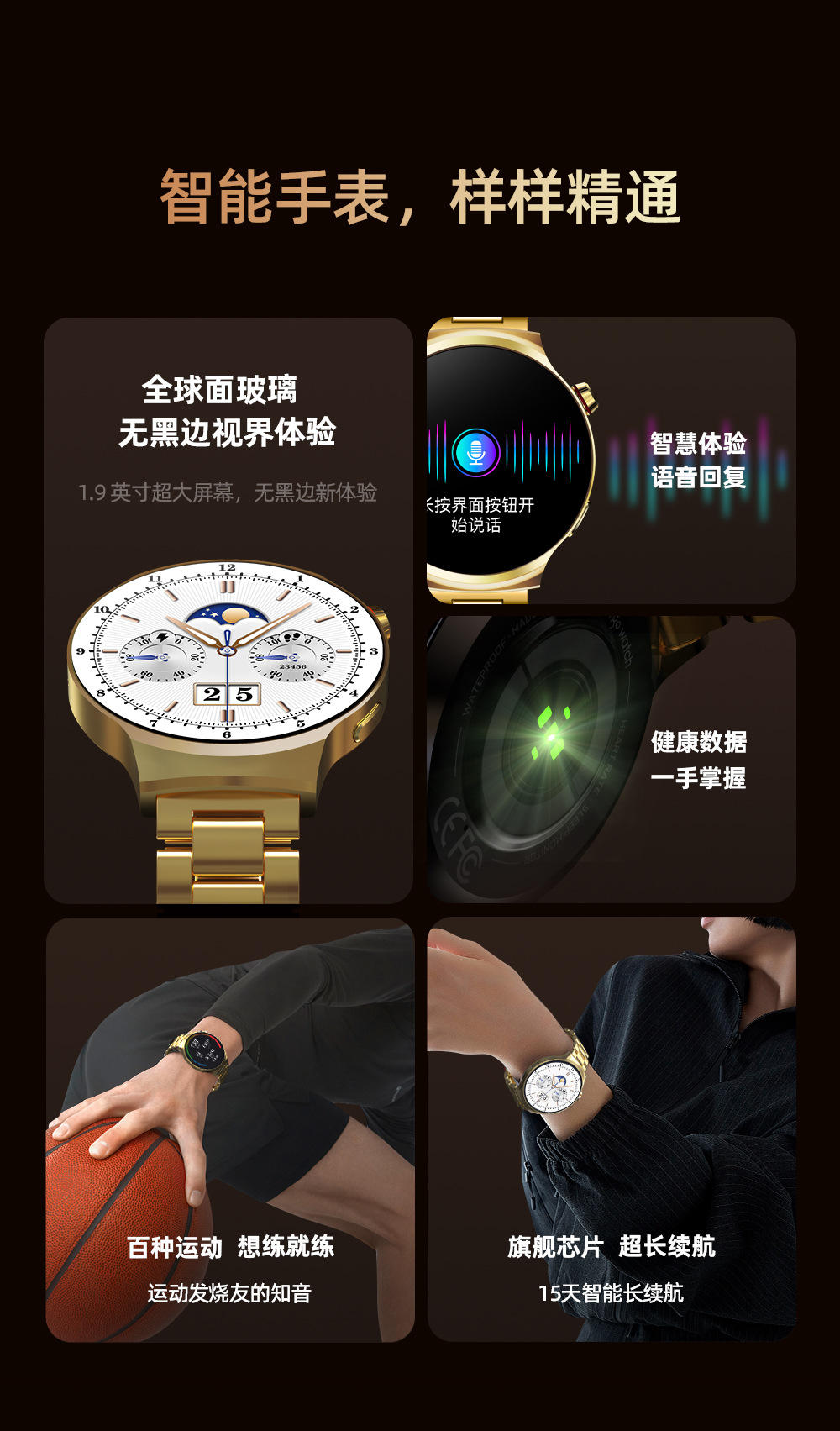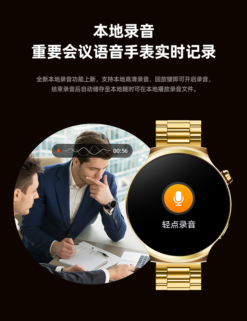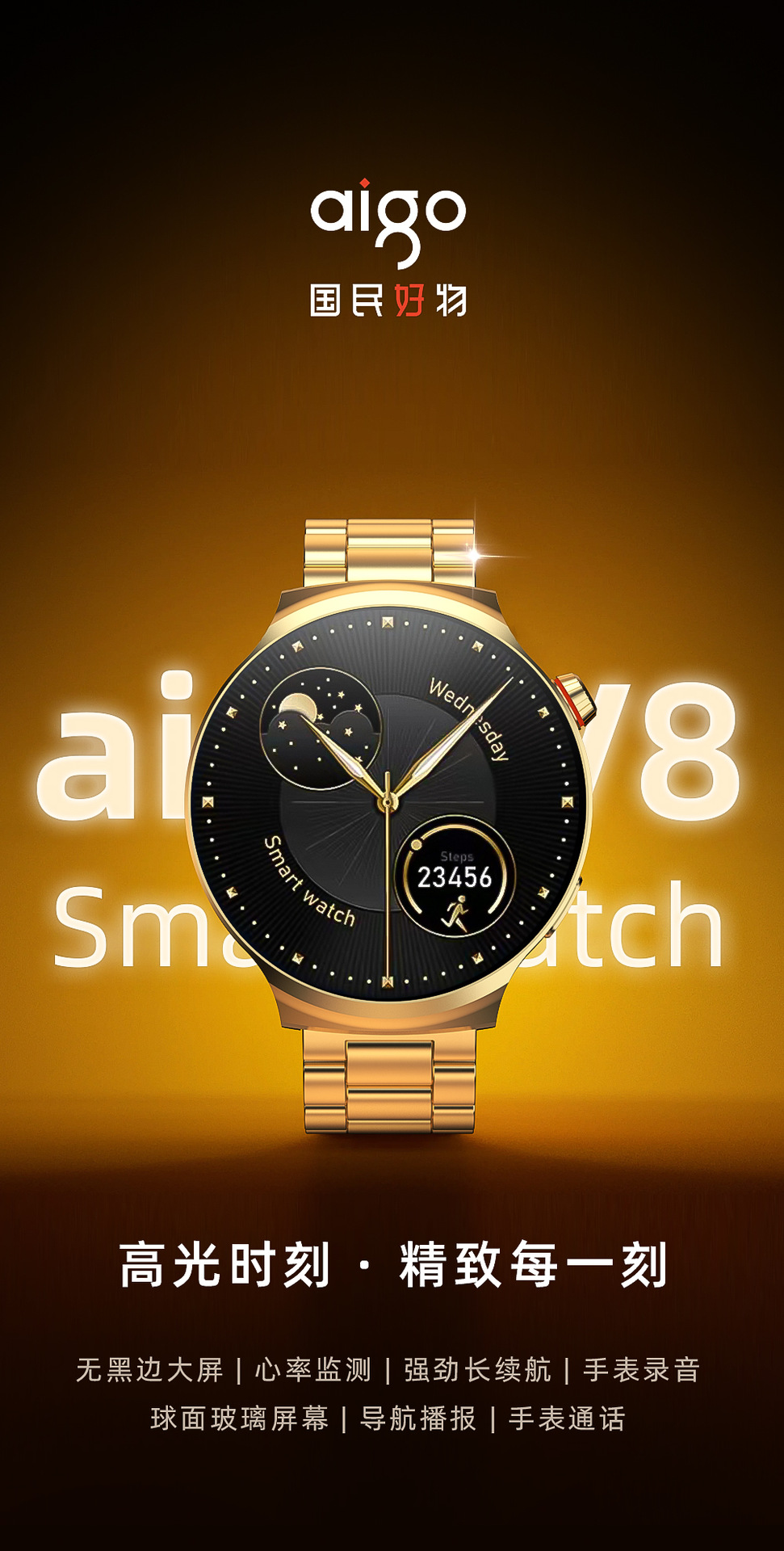 Aigo V8 Gold Edition Smartwatch HD Bluetooth Business Call Watch