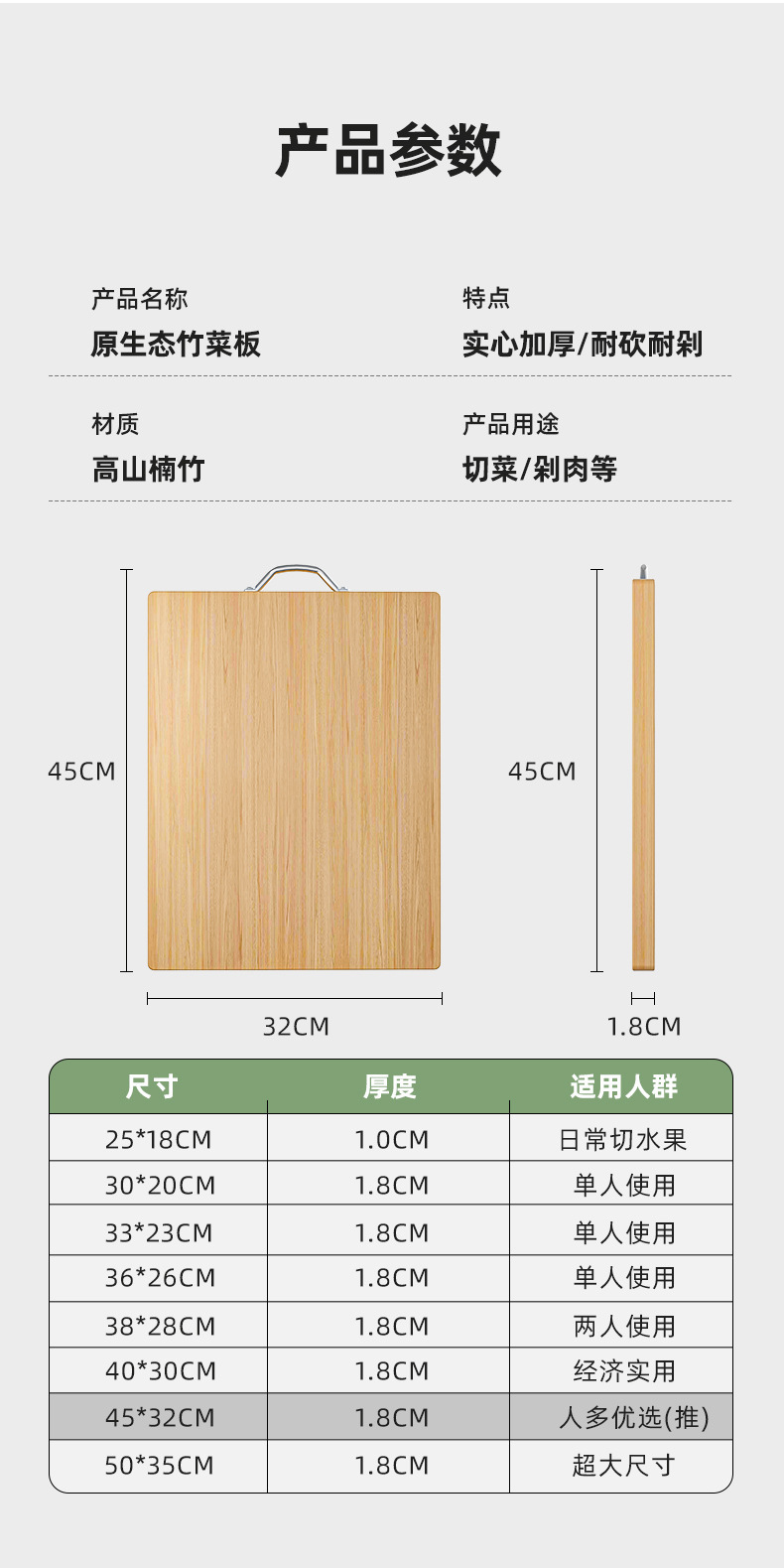 Antibacterial Bamboo Cutting Board Thickened