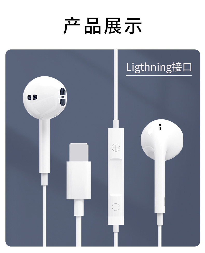 Apple 14 Pro Max Flat-Head Wired Earphones Lighting In-Ear