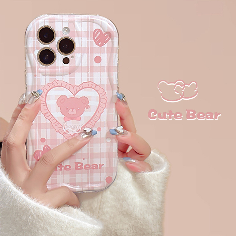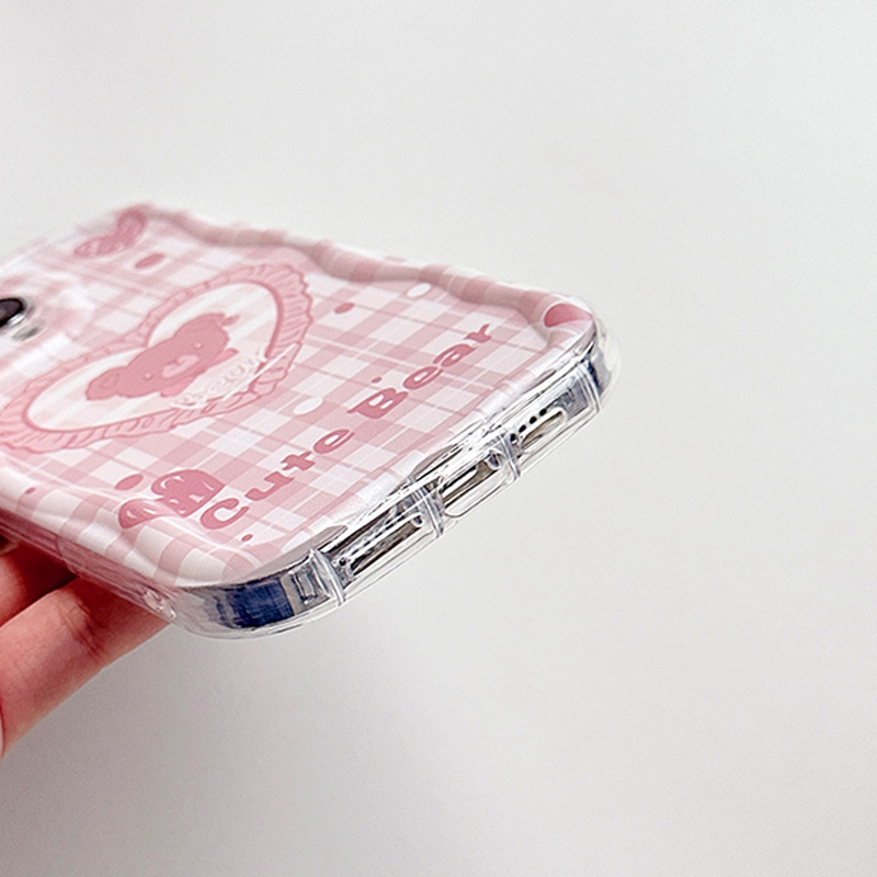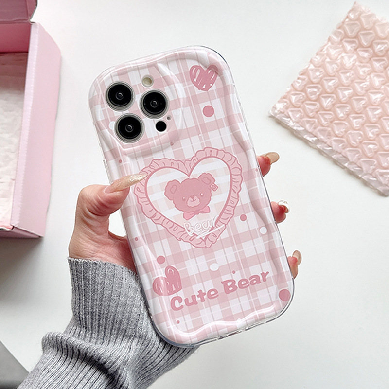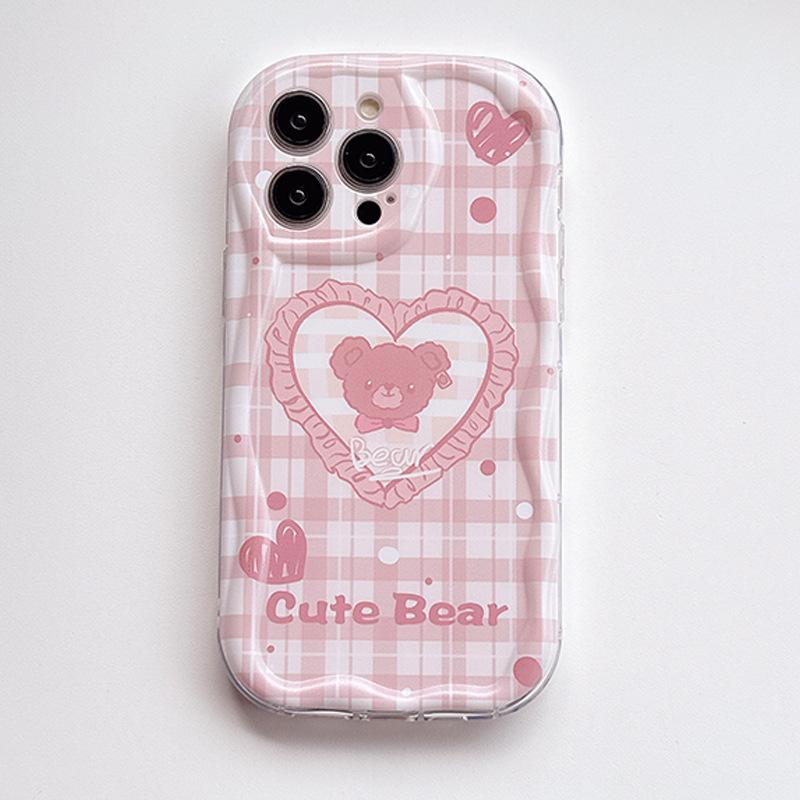 Apple 15 Pro 3D Wave Pink Bear Plaid iPhone 11/12 Precision Soft Case