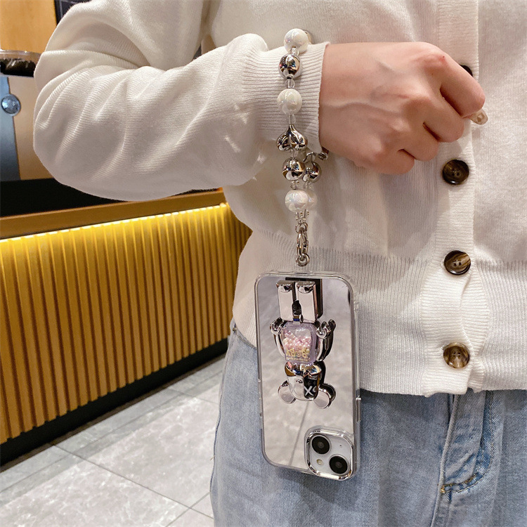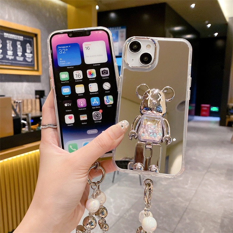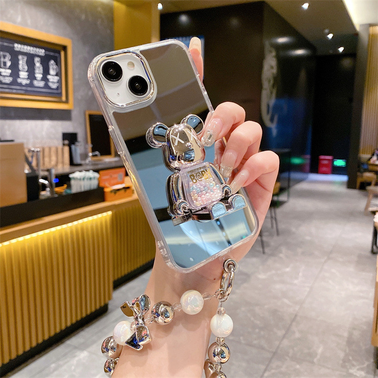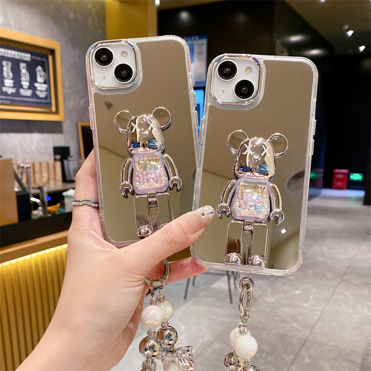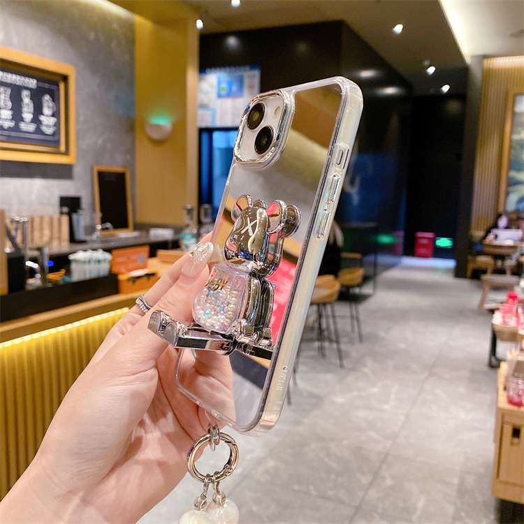 Apple 15 Pro Acrylic Mirror Bear Stand iPhone 11/12 Shockproof Case