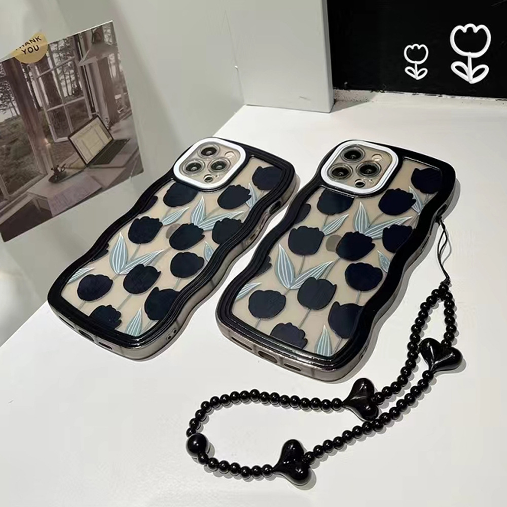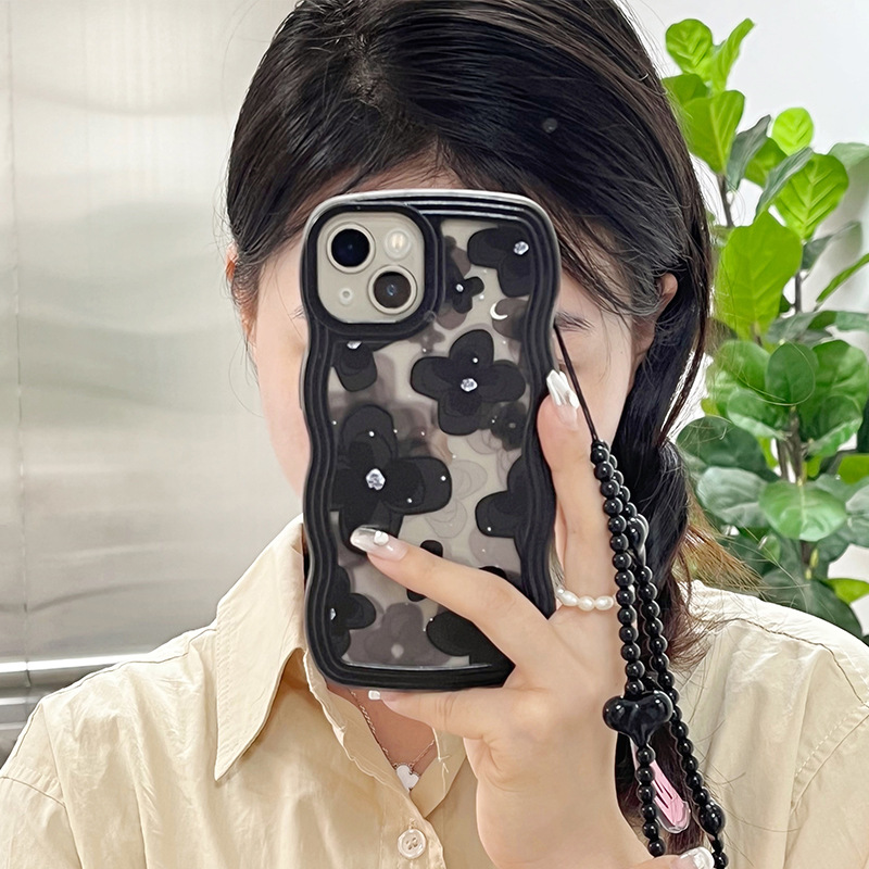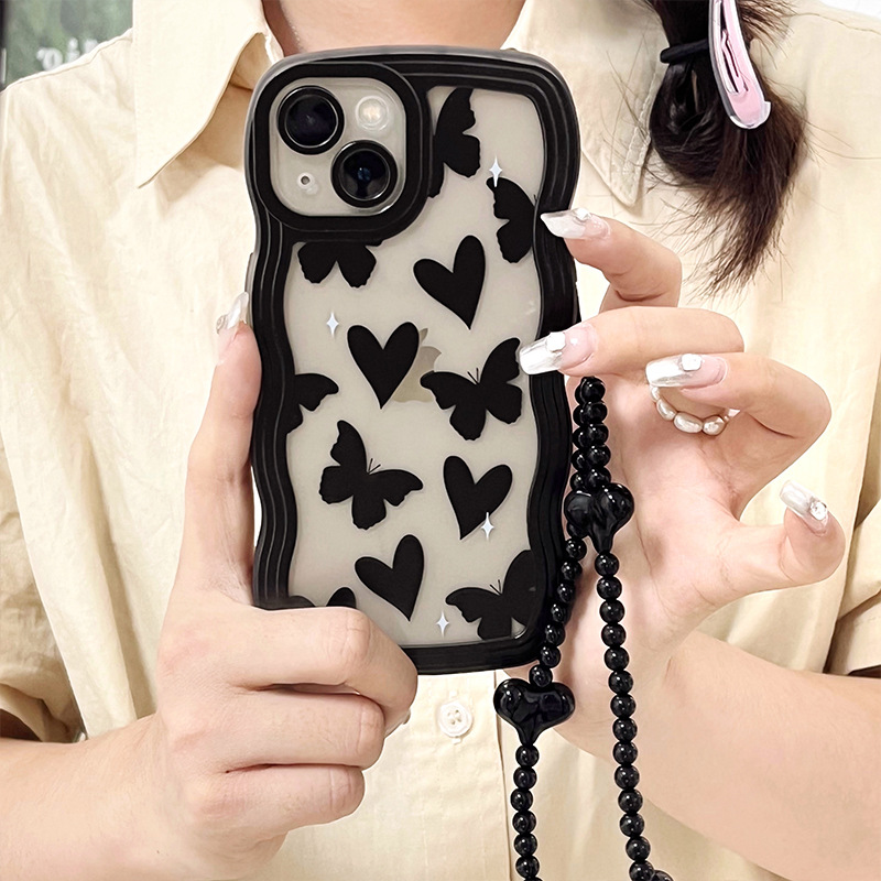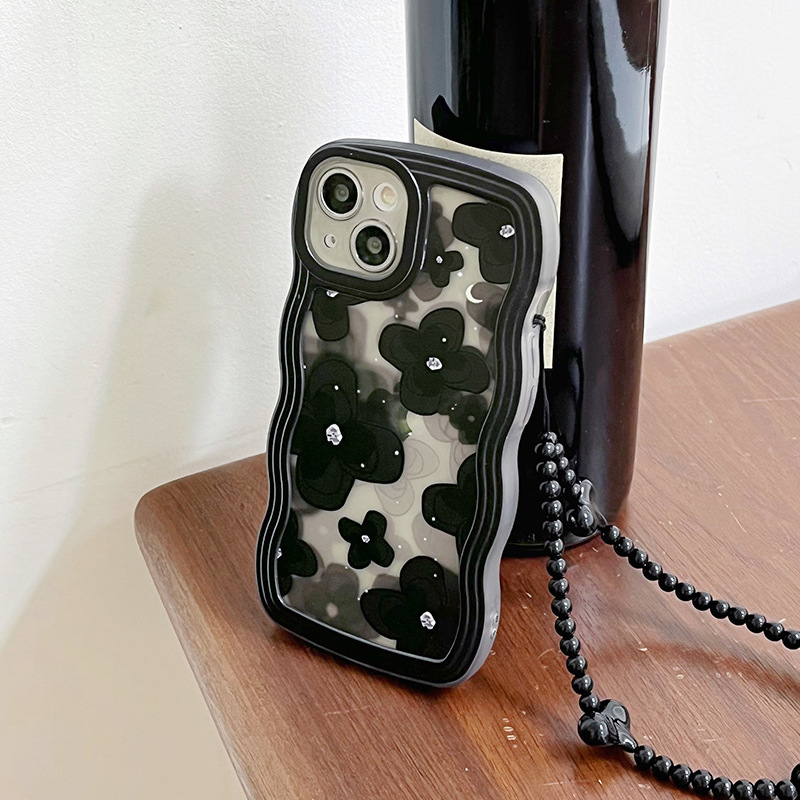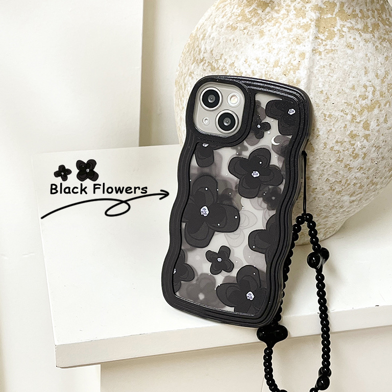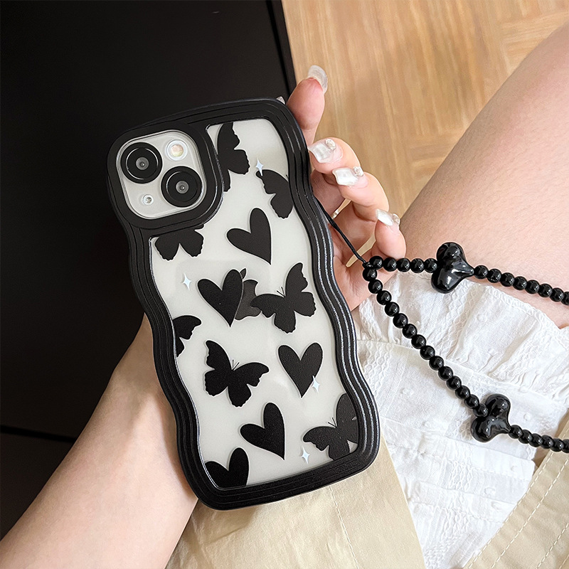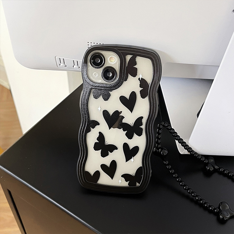 Apple 15 Pro Big Wave Black Floral iPhone 13 Heart Butterfly TPU Full Cover