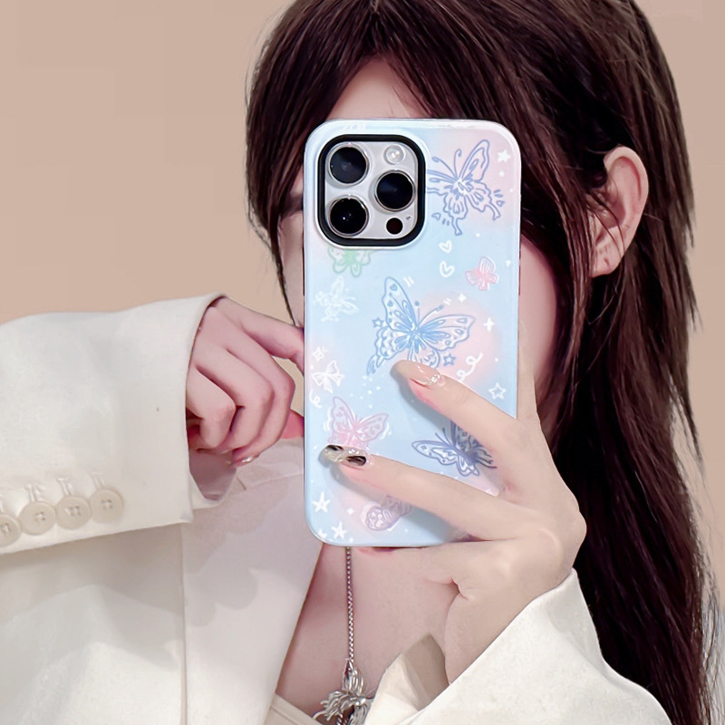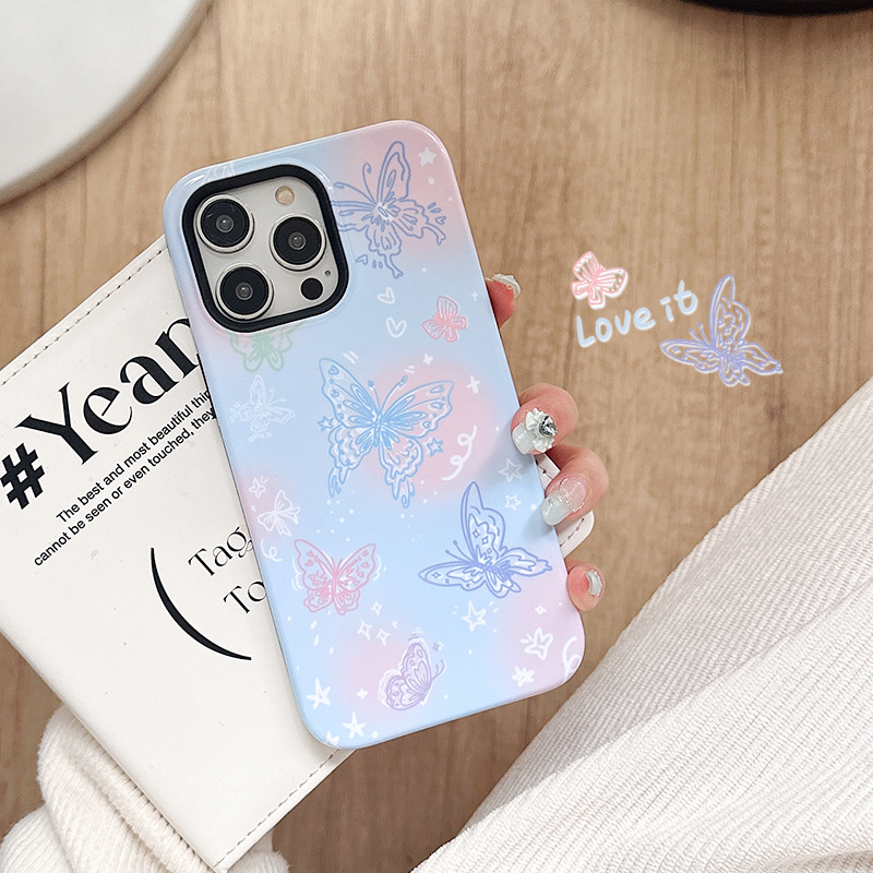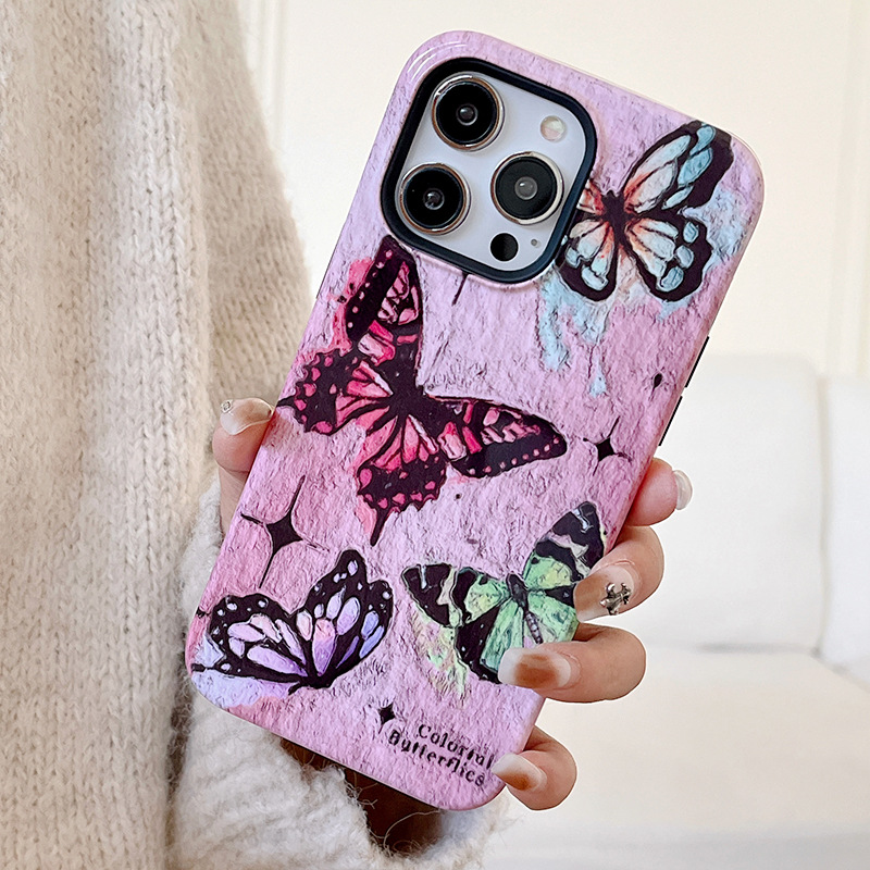 Apple 15 Pro Film 2-in-1 Line Butterfly iPhone 11/12 Crayon Flower Case