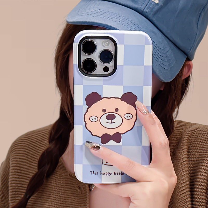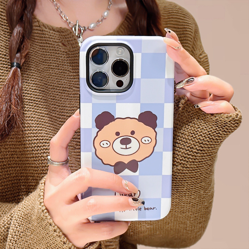 Apple 15 Pro Ins Film 2-in-1 Cute Bear iPhone 12 Color Block
