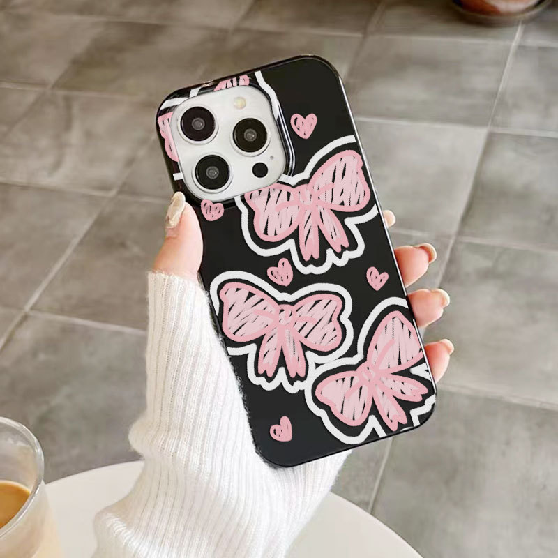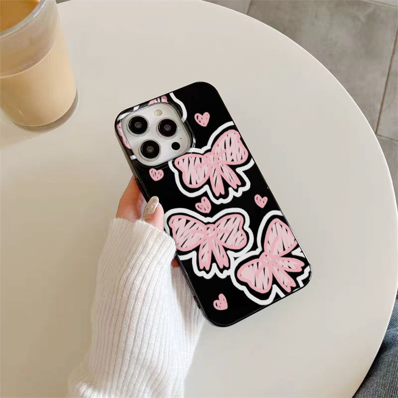 Apple 15 Pro Jelly Black Pink Bow iPhone XS/12 Girls Shockproof Soft Case