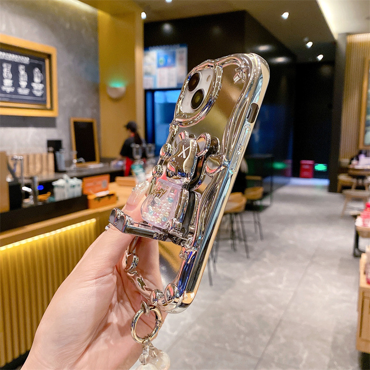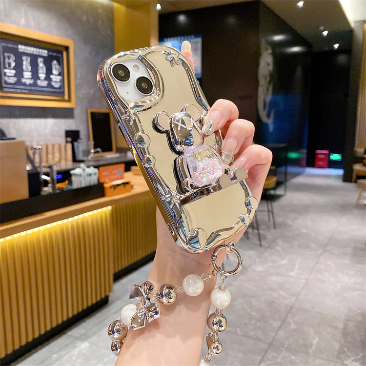 Apple 15 Pro Plated Mirror Bear Stand iPhone XR/11 Creative Soft Case