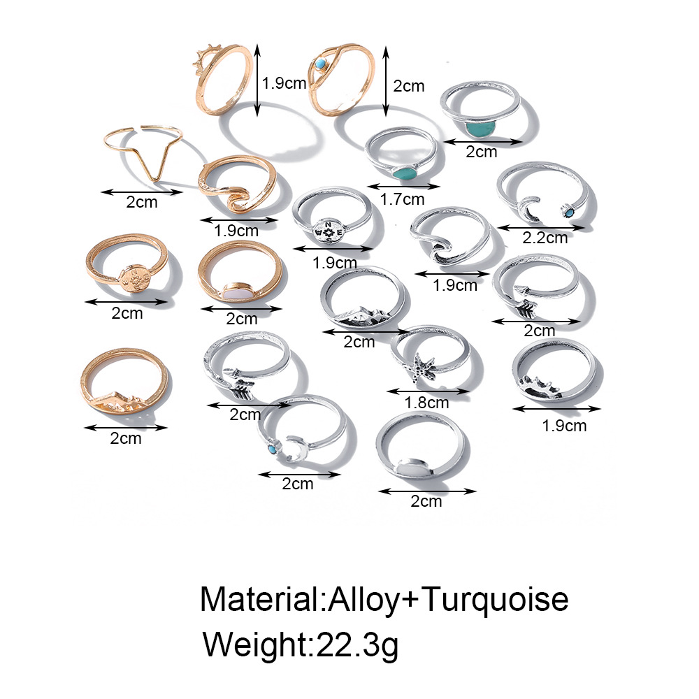 Arrow sun compass moon eye ring 19 piece set rings
