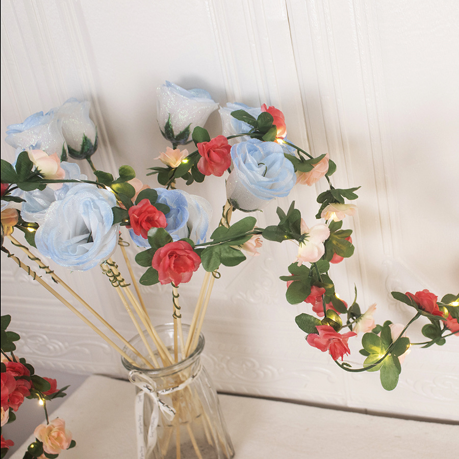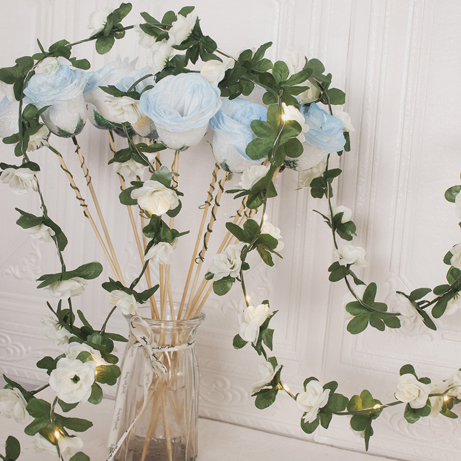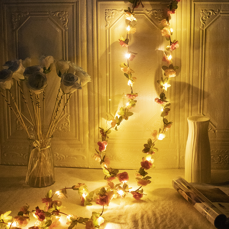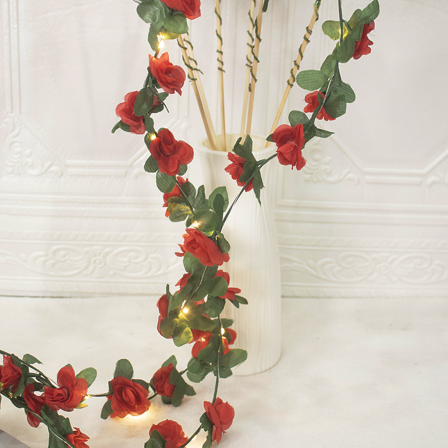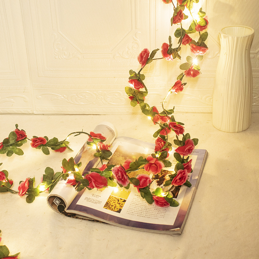 Artificial rose vine decorative copper wire lamp