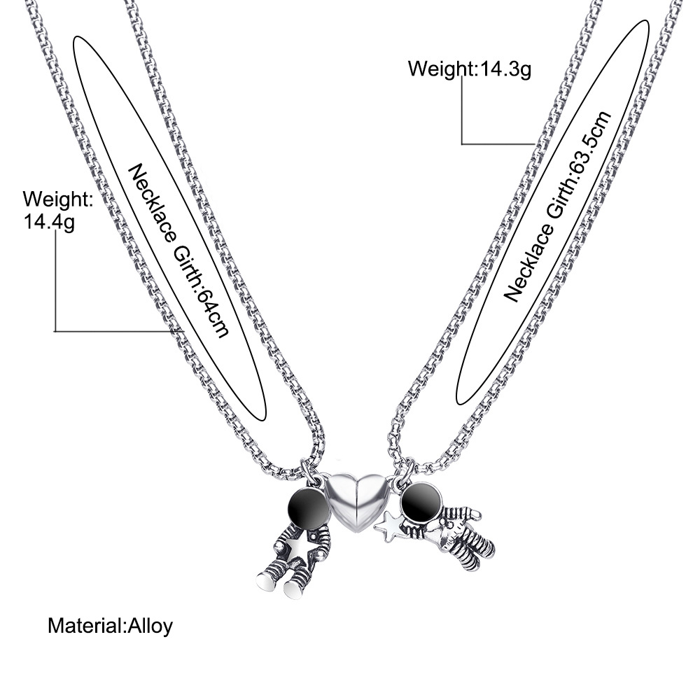 Astronaut couple necklace magnet attraction pendant