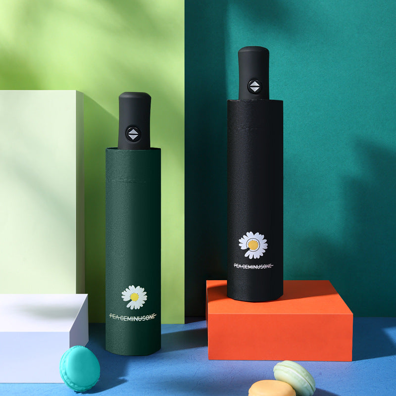 Automatic Daisy Umbrella 3-Fold Black Coated Sunshade