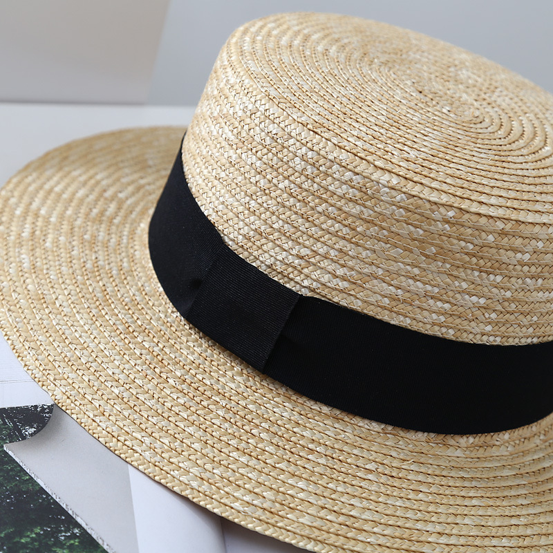 Beach Vacation Women's Sun Hat Stylish British Straw Flat Brim