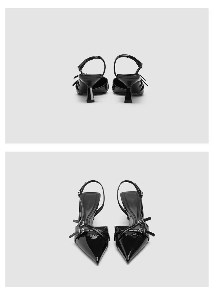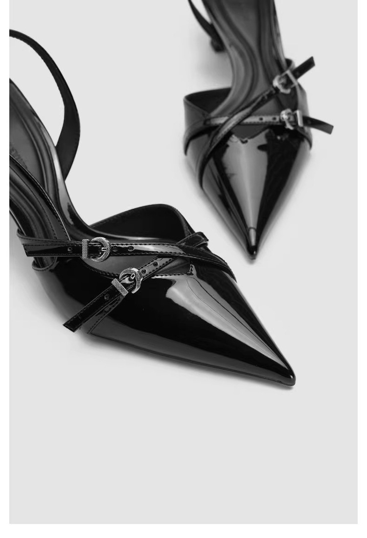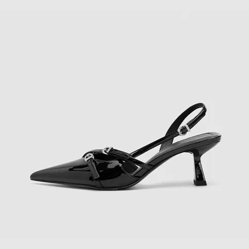 Black French mid-heel sandals