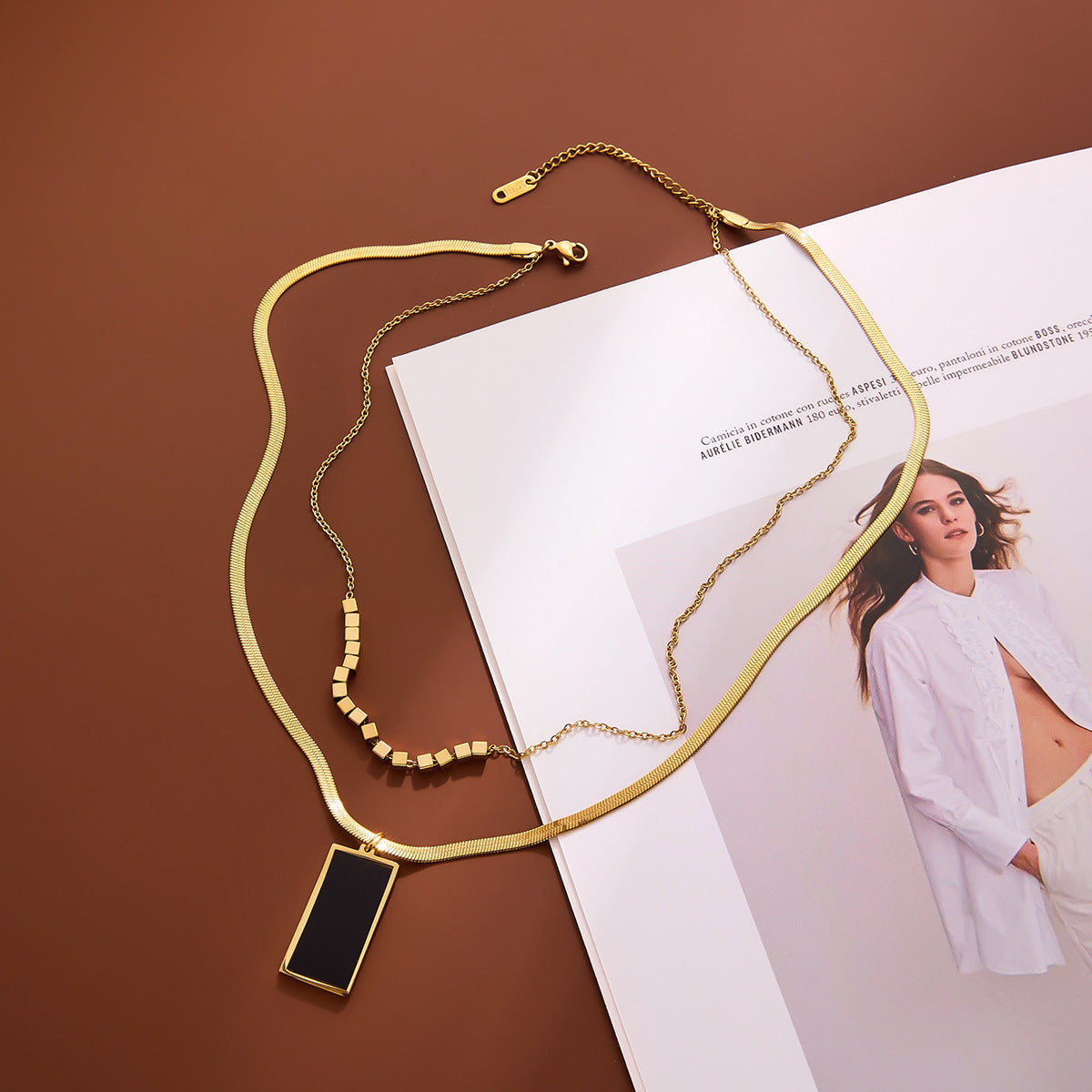 SKU:YY-0736-Black geometric square double layer stacking