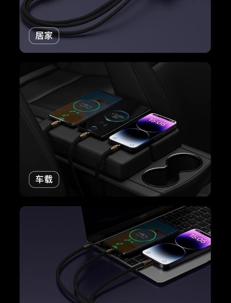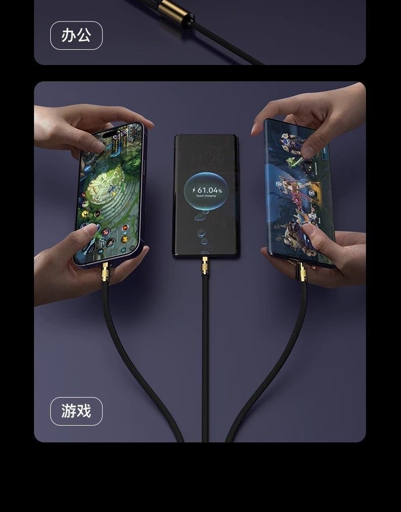 Black gold braided two-to-three data cable