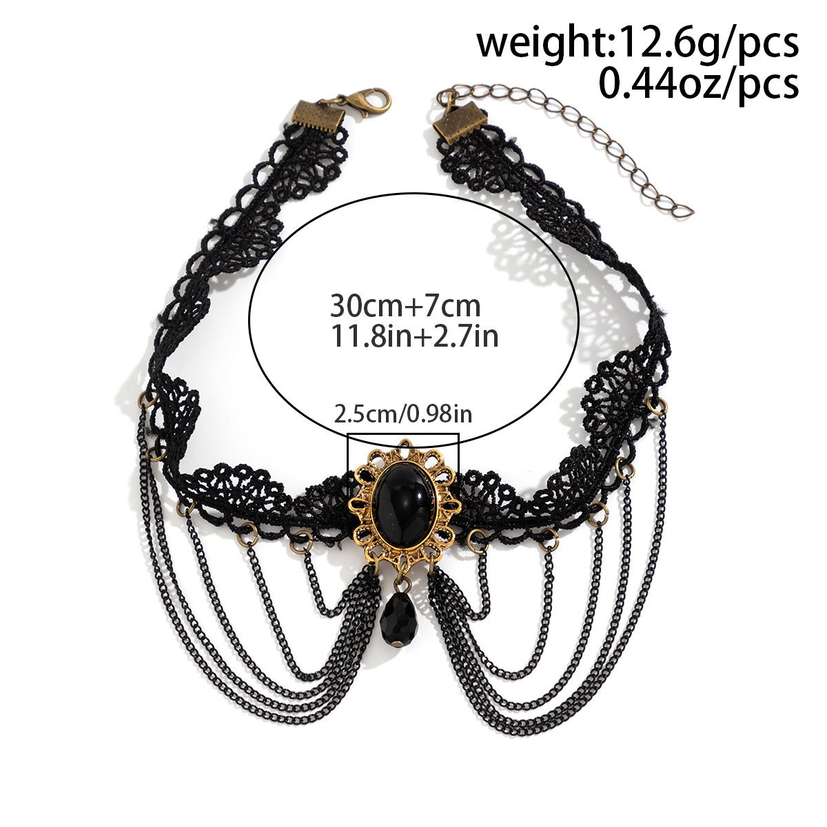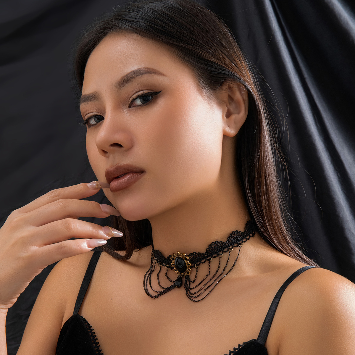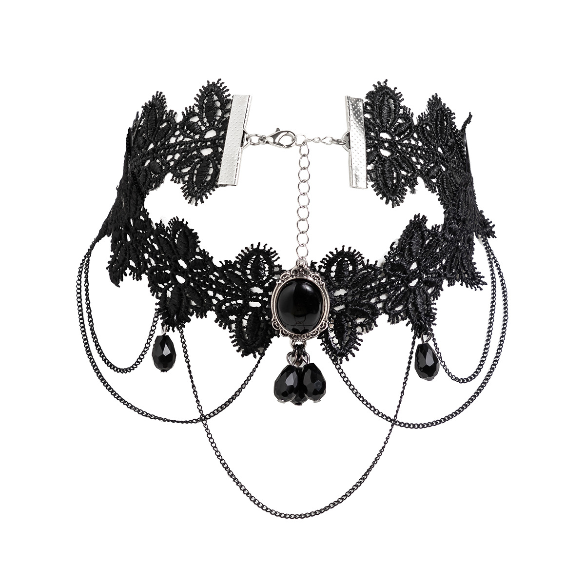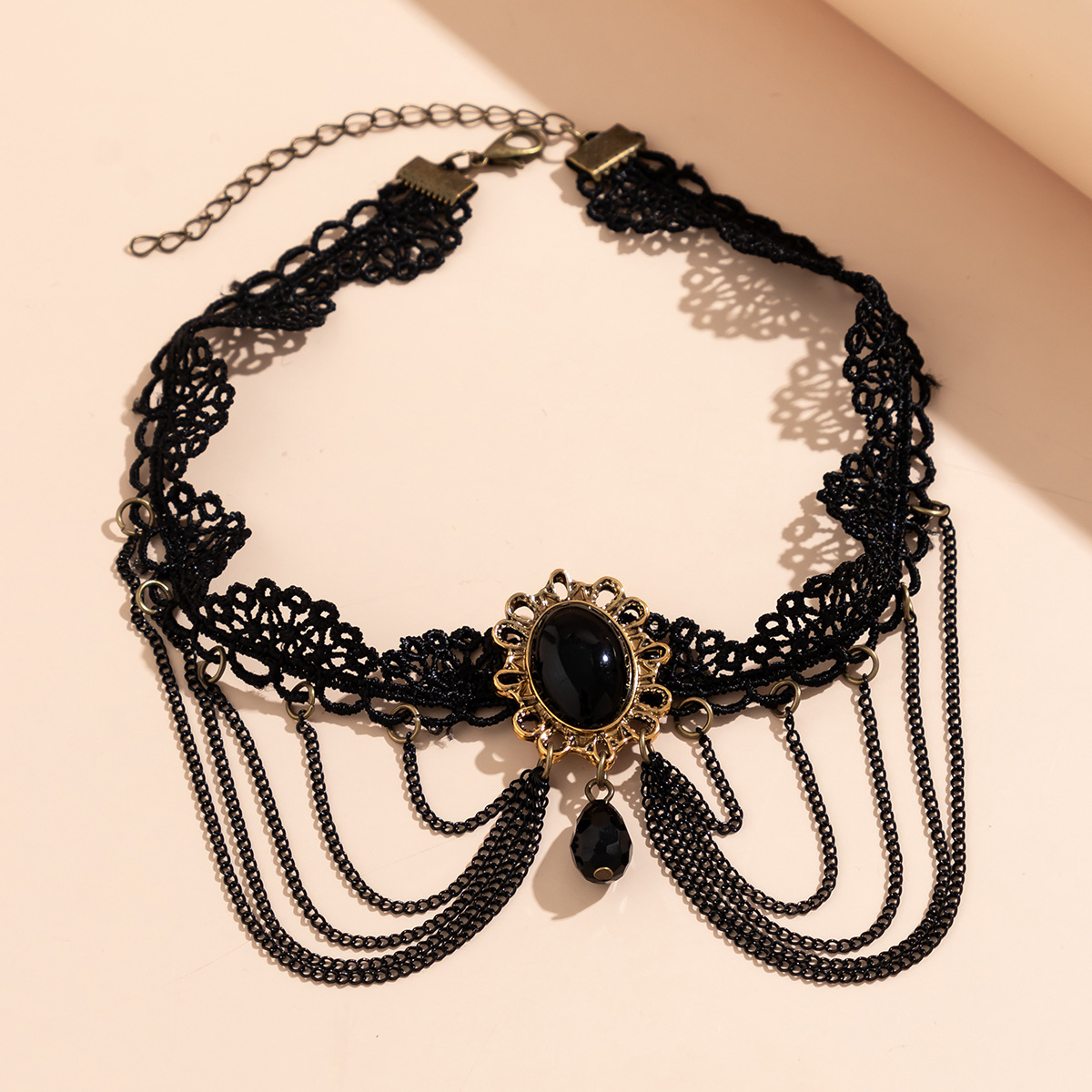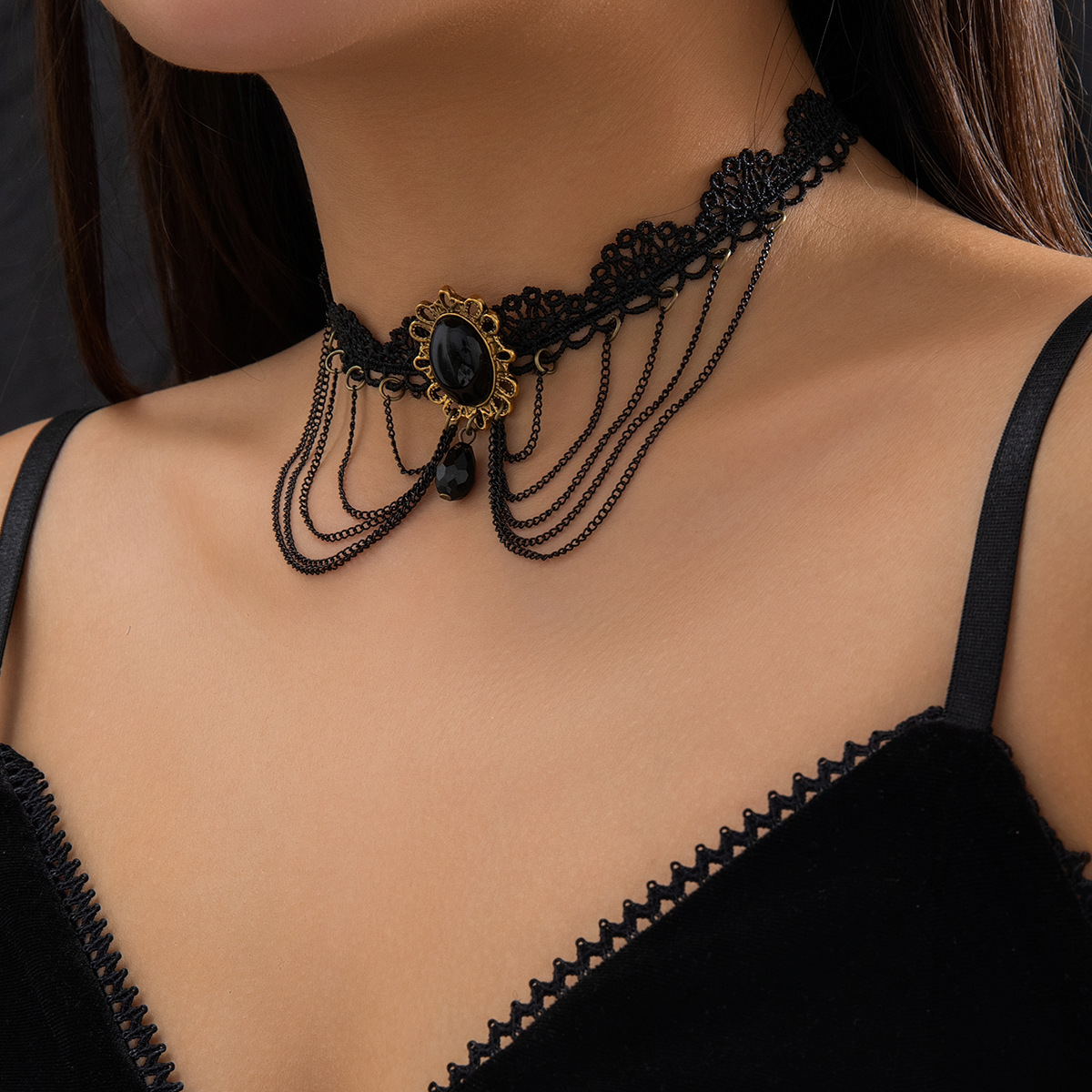 Black Gothic Feng Shui Drop Fringed Necklace