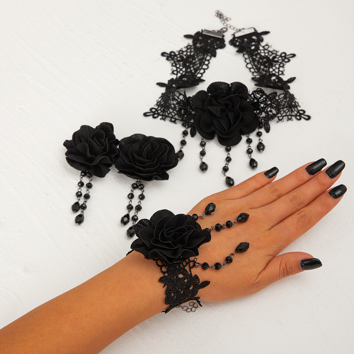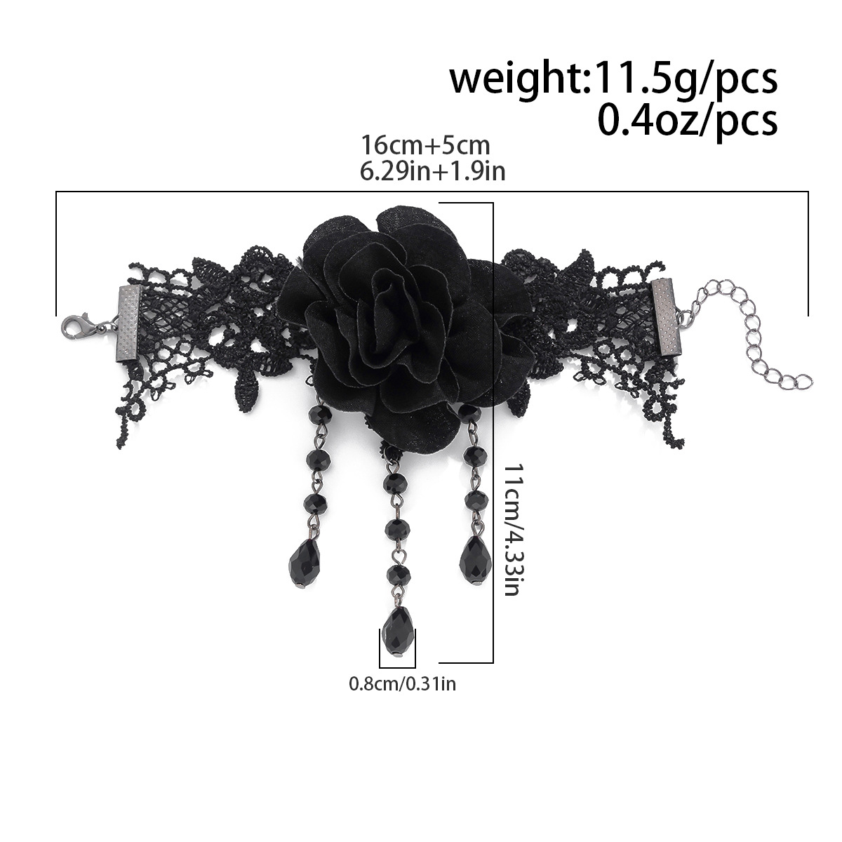 Black Lace Tassel Pendant Necklace