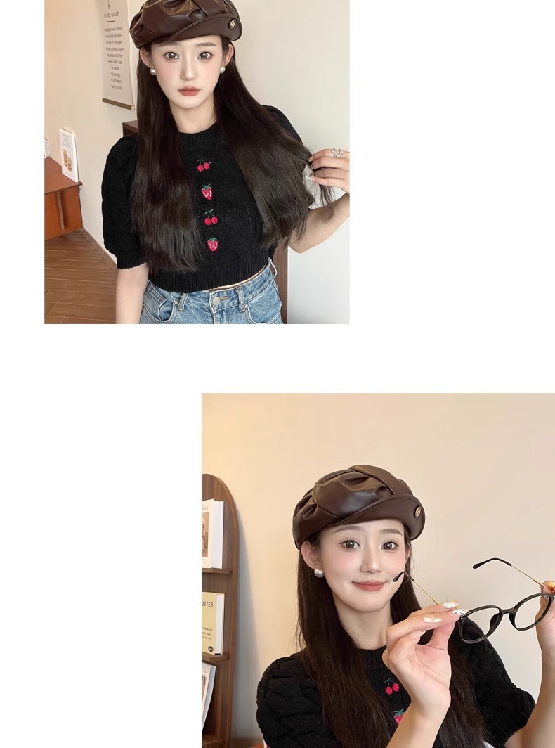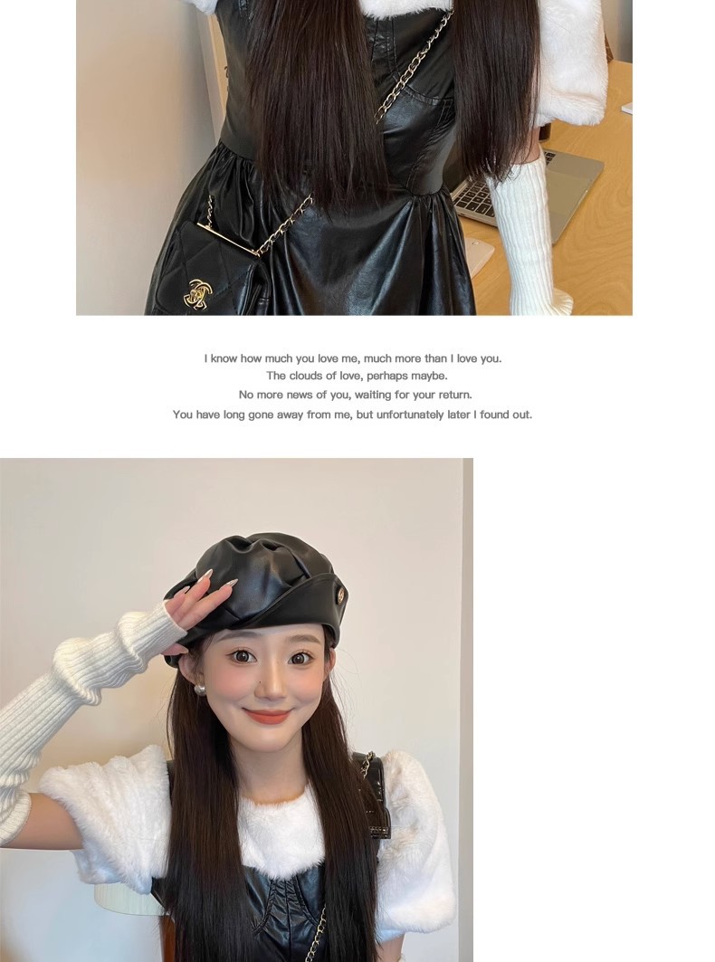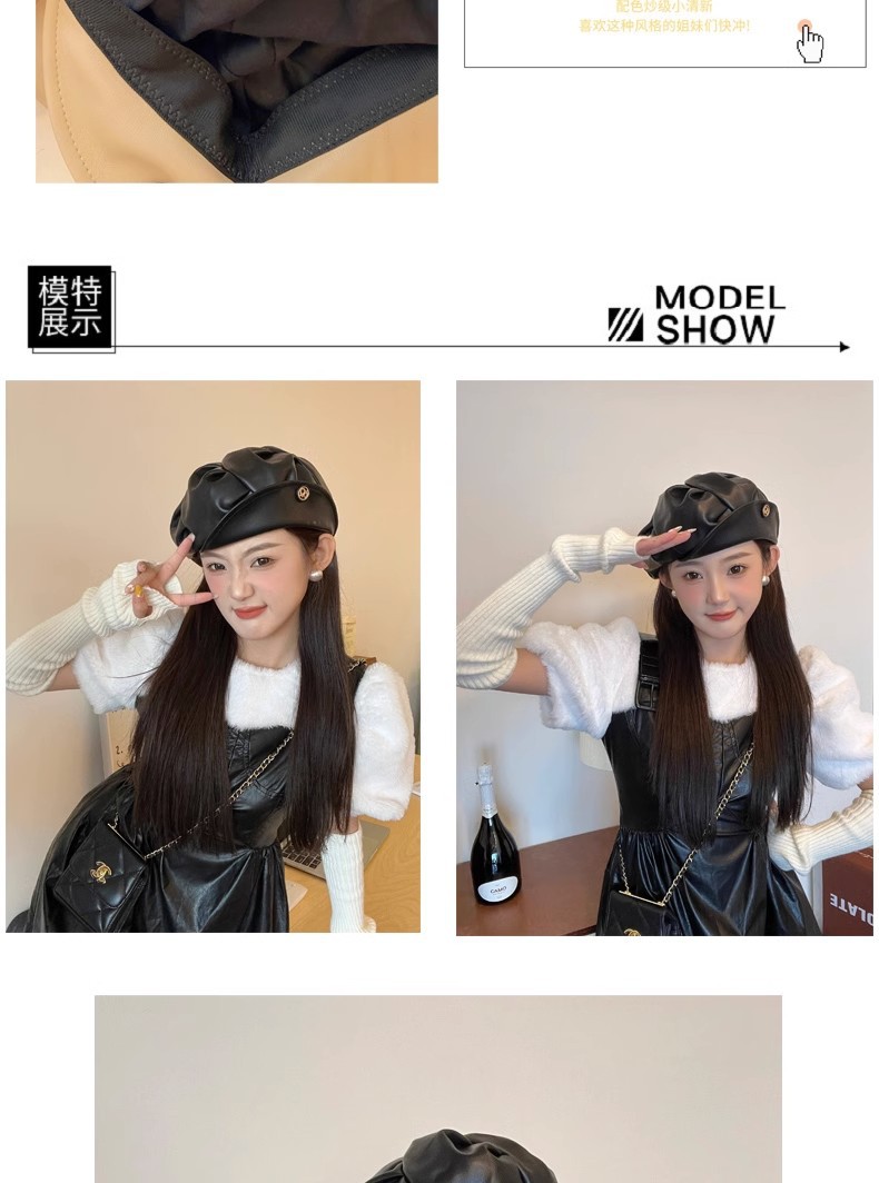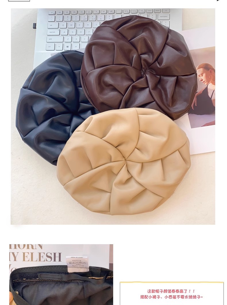 Black PU Beret Ruffled Vintage, Fall/Winter