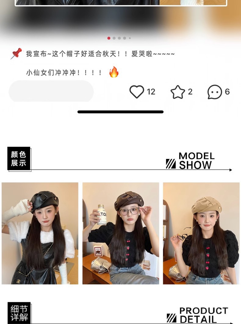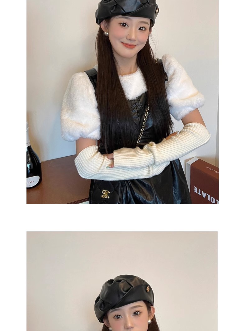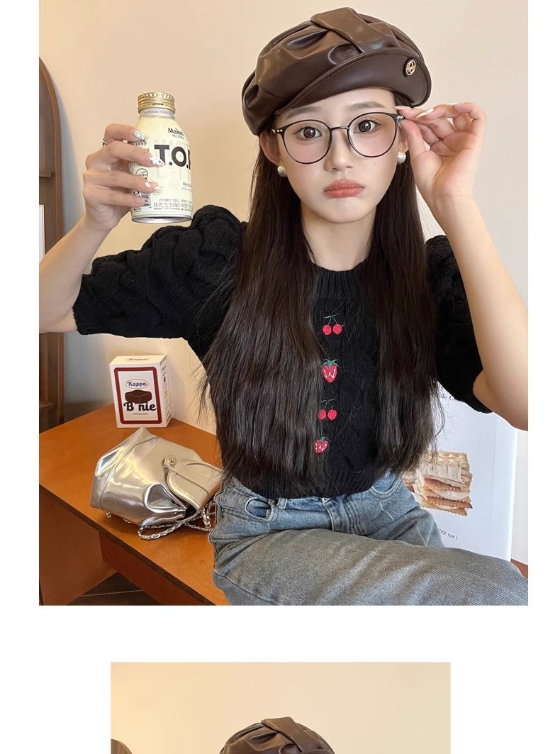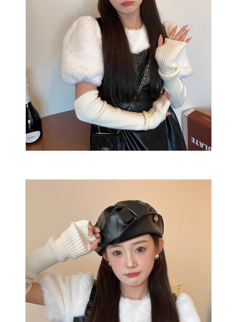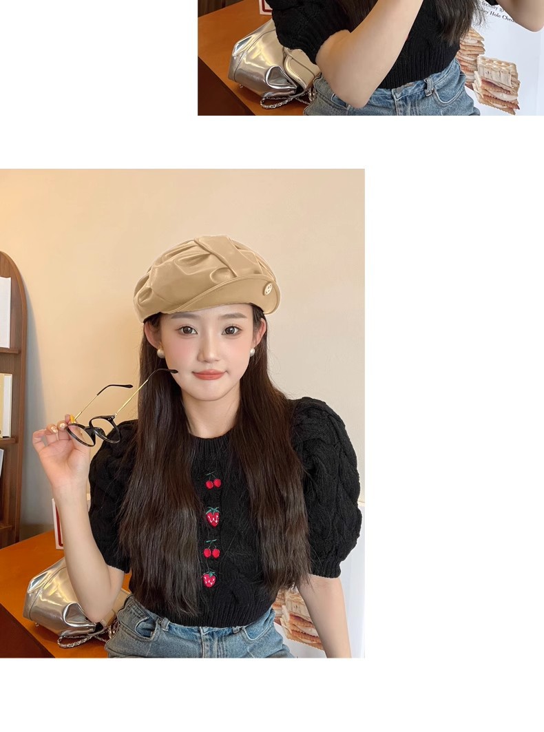 Black PU Beret Ruffled Vintage, Fall/Winter