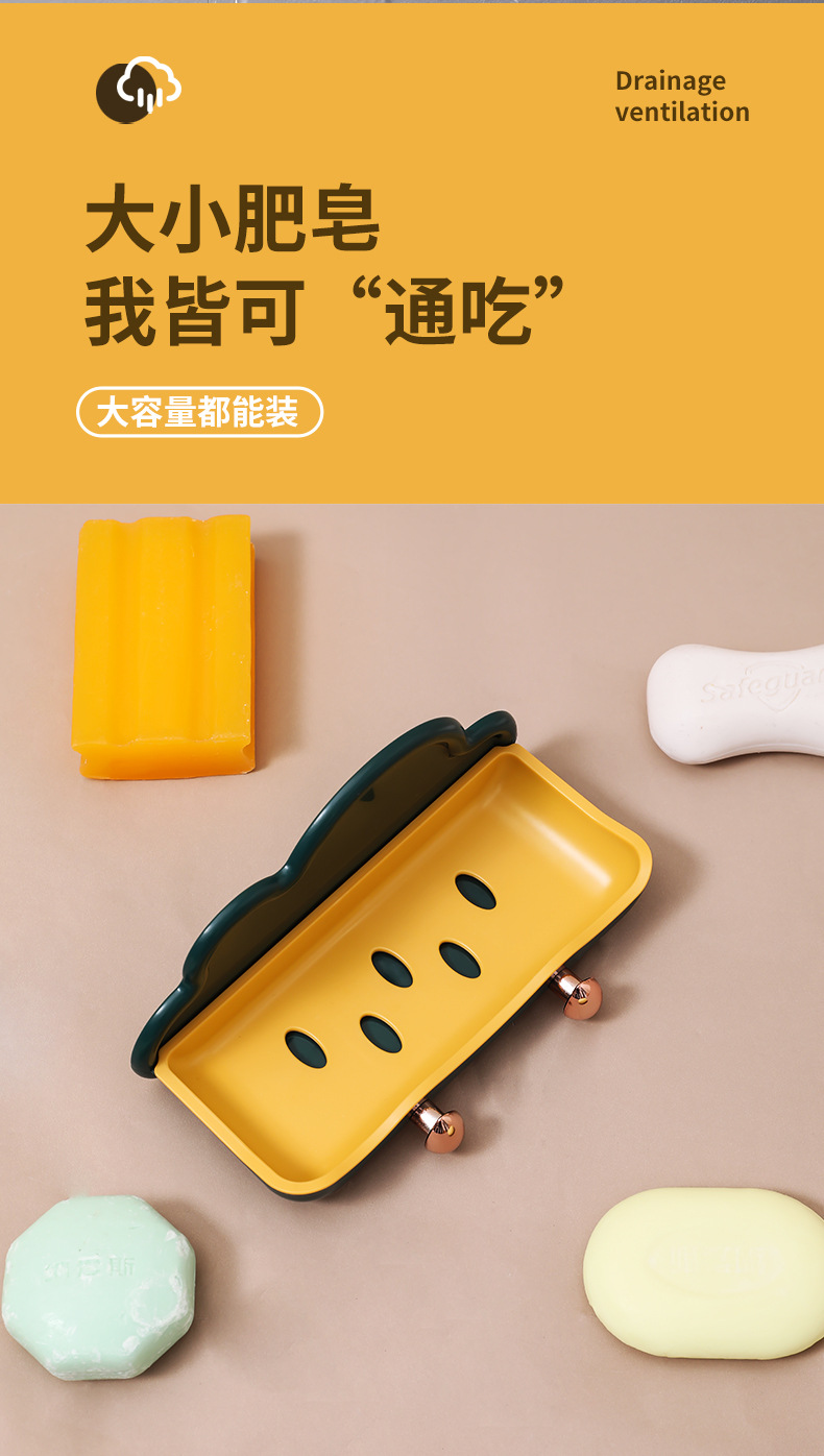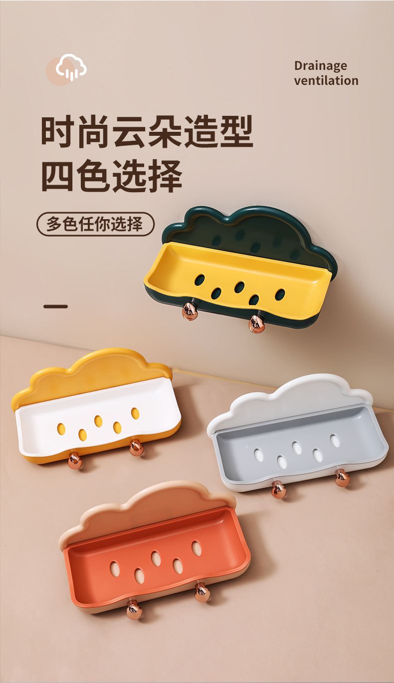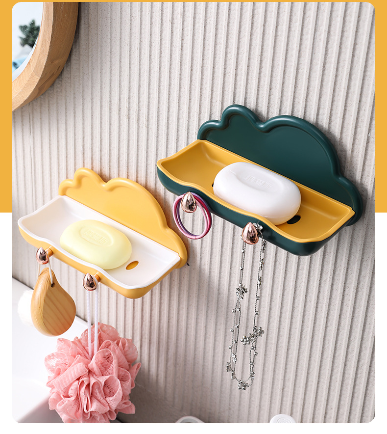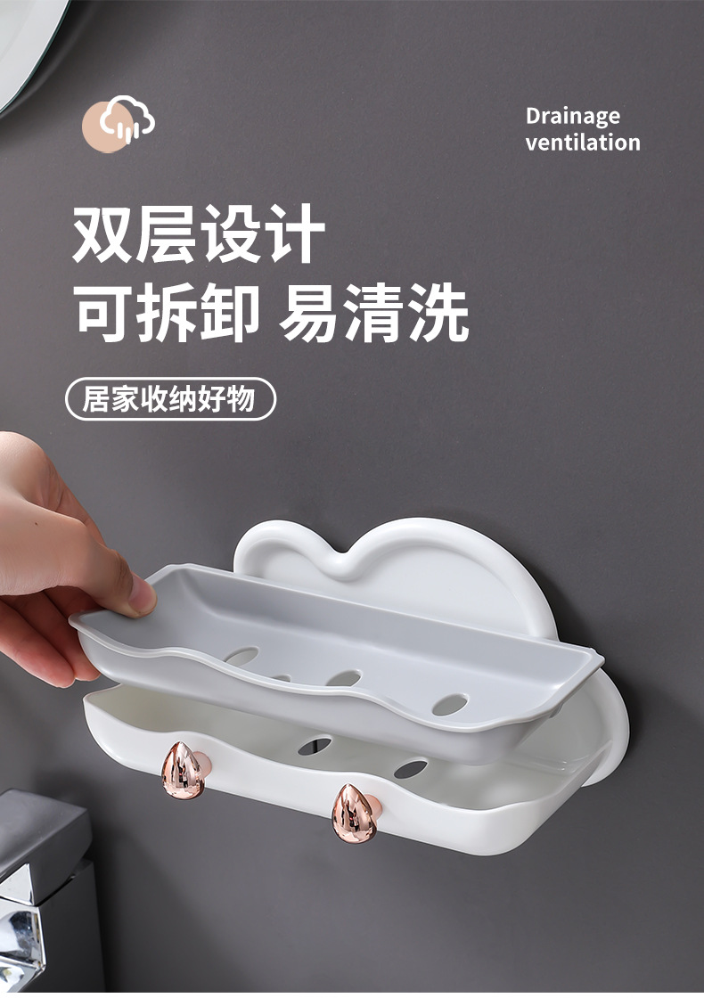 Block Soap Holder, Wall-Mounted, No-Drill, Double-Layer