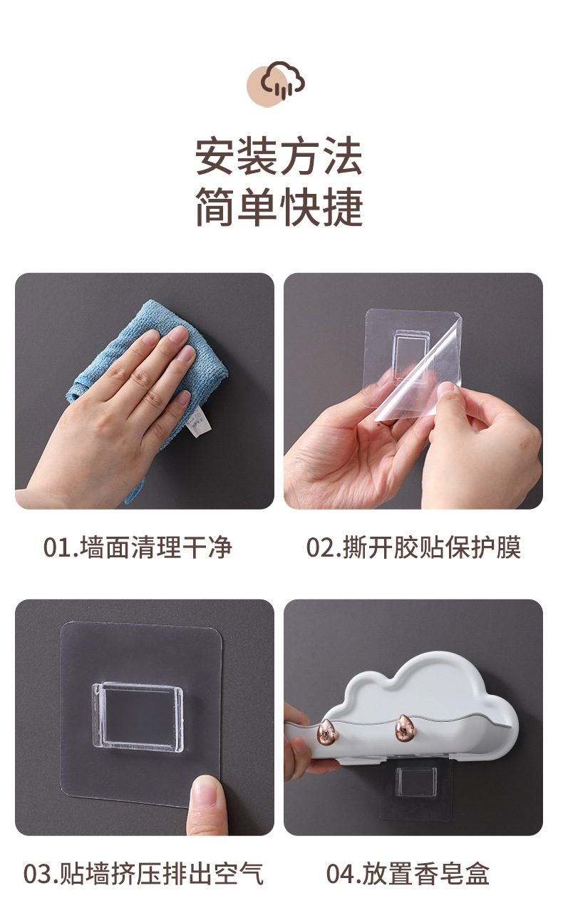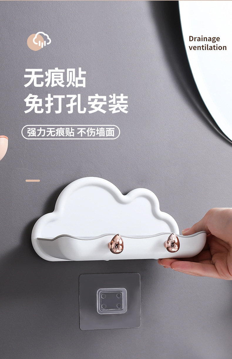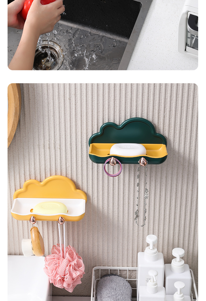 Block Soap Holder, Wall-Mounted, No-Drill, Double-Layer