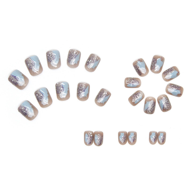 Blue White Glitter Nails