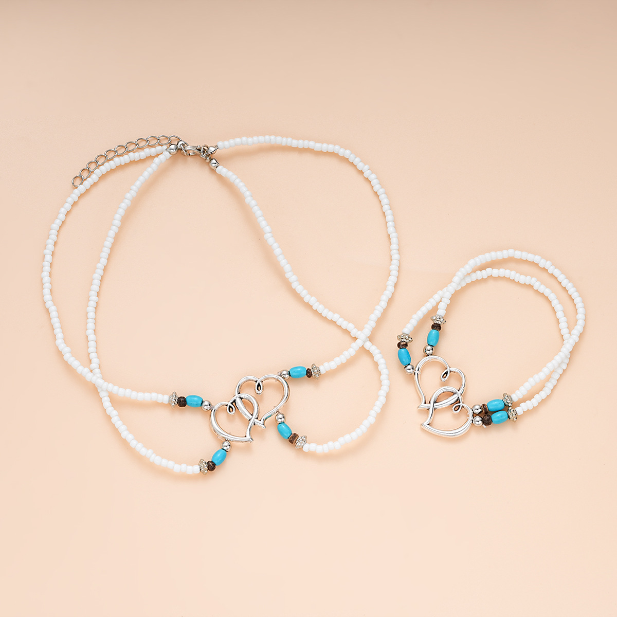Bohemian Rice Bead Heart Bracelet Necklace Set