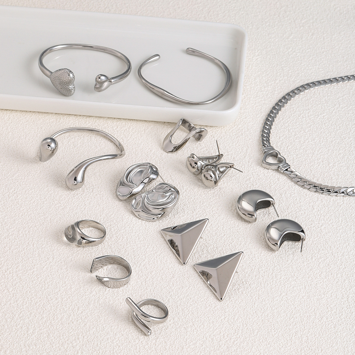 Bracelet Steel Ring Polished Earrings