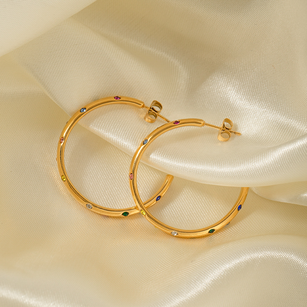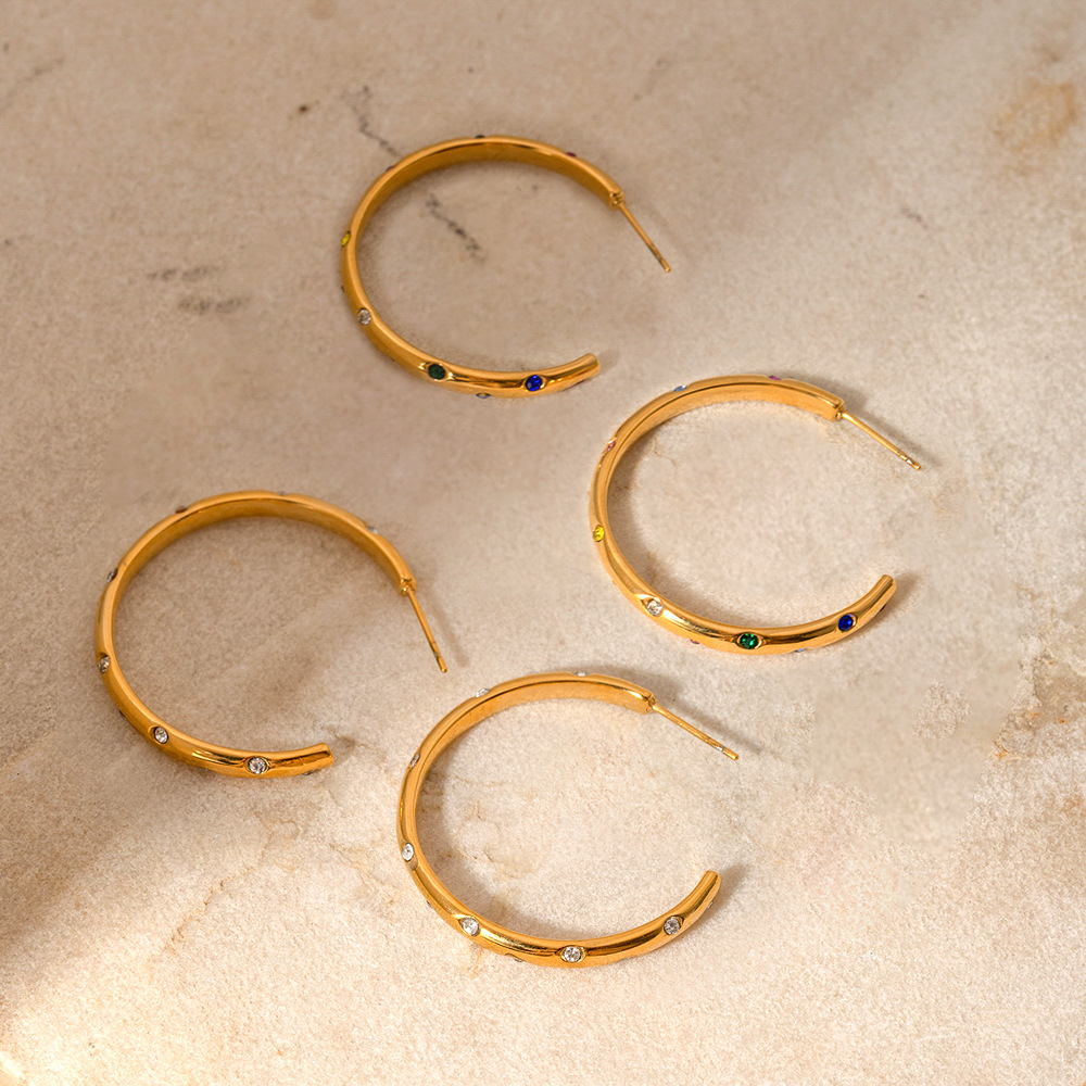 C-shaped earrings with colored zircon