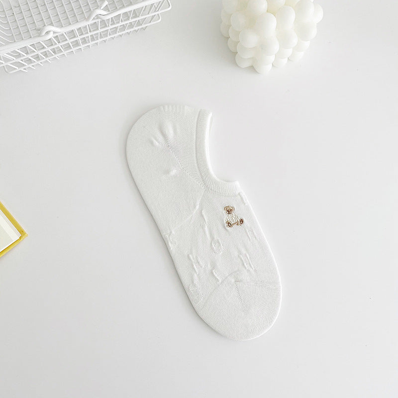 Cartoon Embroidery Thin Invisible Women's Ankle Socks