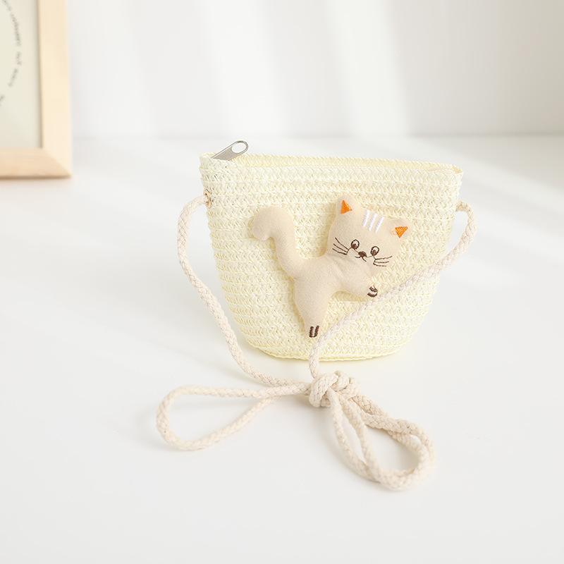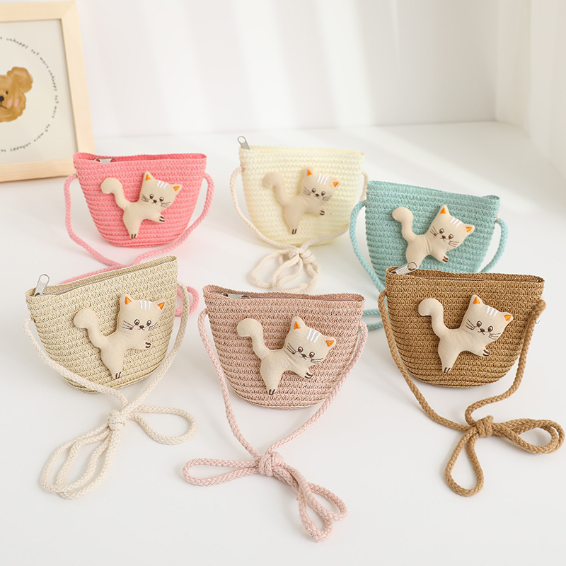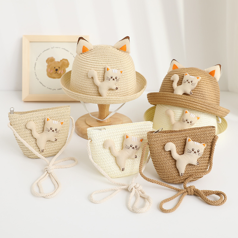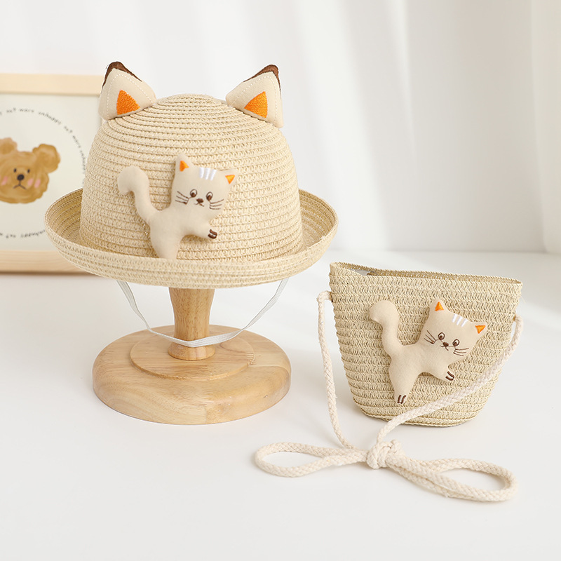 Cat Straw Hat Animal Bag Set Sun Protection Cute Travel Kids Fisherman