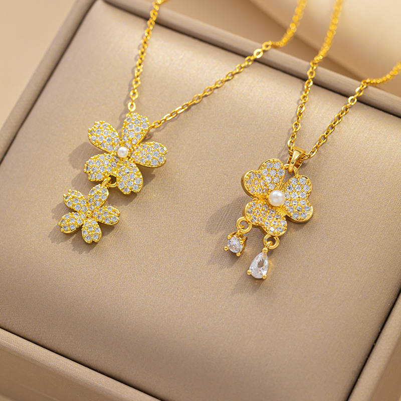 Chic Pearl Fringe Stainless Steel Necklace with Zircon Pendant