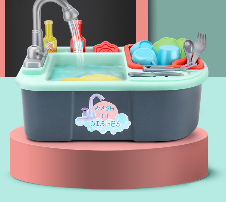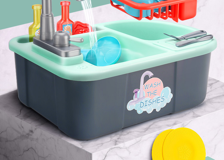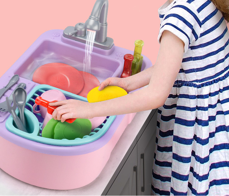 Children's Electric Dishwasher Toy with Recirculating Water Pretend Play Kitchen Sink Small Basin Educational Dining Kitchen