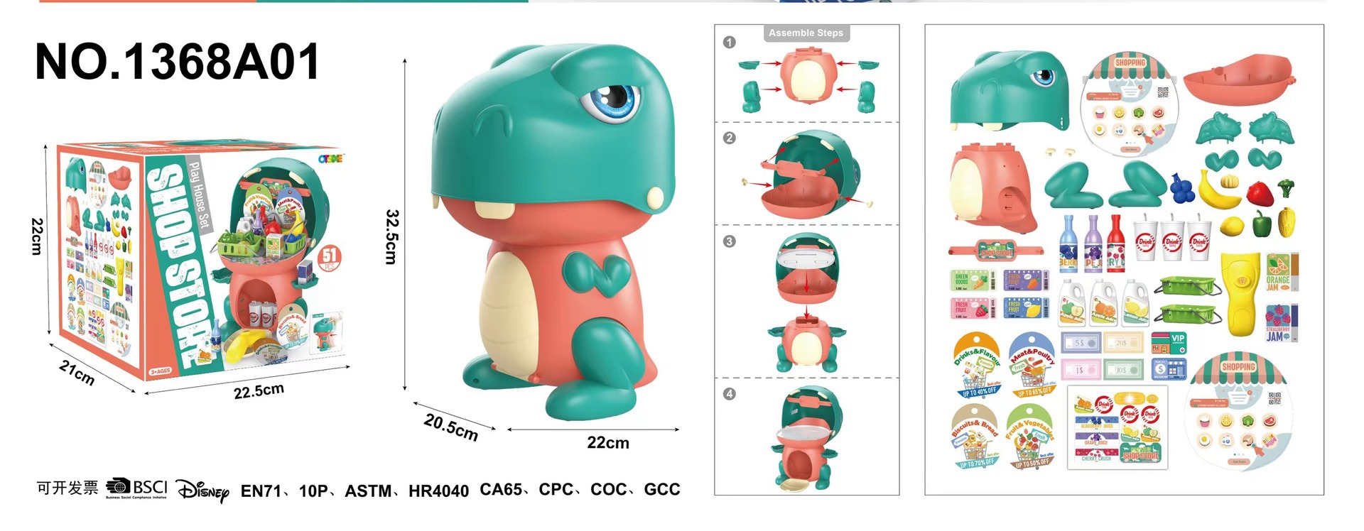 Children's Pretend Play Kitchen Toy Set: Girls' Cooking Rice Cooking Kitchen Utensil Tableware Dinosaur Storage Set