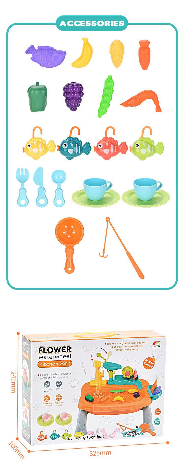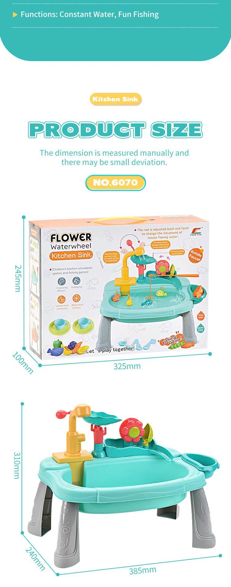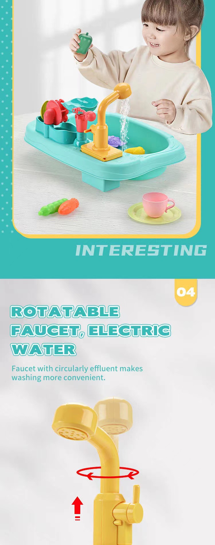 Children's Toy: Electric Flower Waterwheel Dishwasher 3-in-1 Vegetable Washing Basin with Circulating Water Fishing Plate Pretend Play
