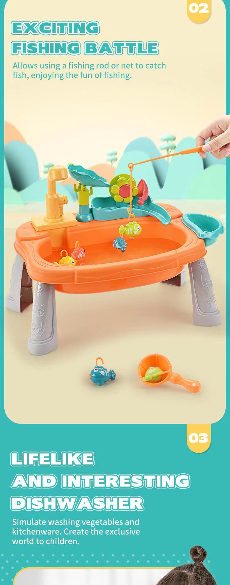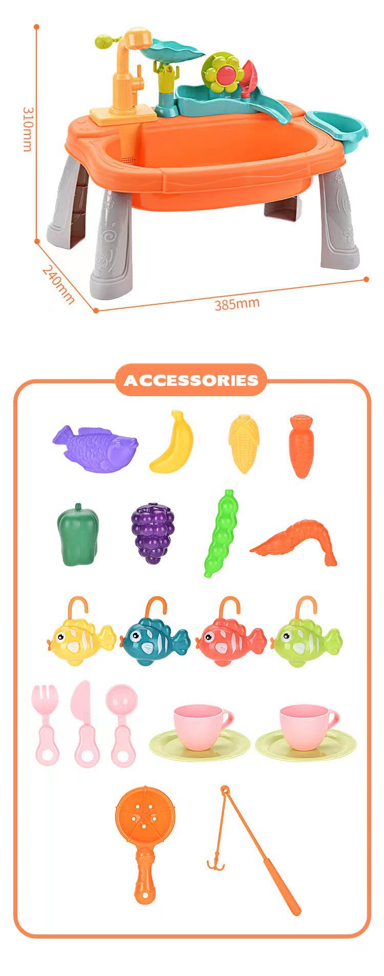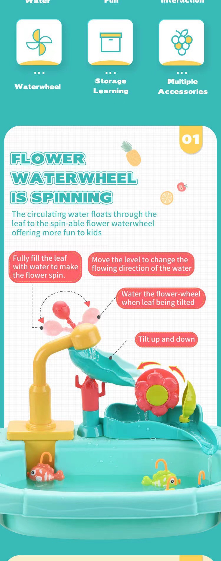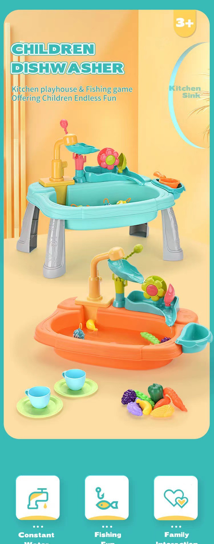 Children's Toy: Electric Flower Waterwheel Dishwasher 3-in-1 Vegetable Washing Basin with Circulating Water Fishing Plate Pretend Play