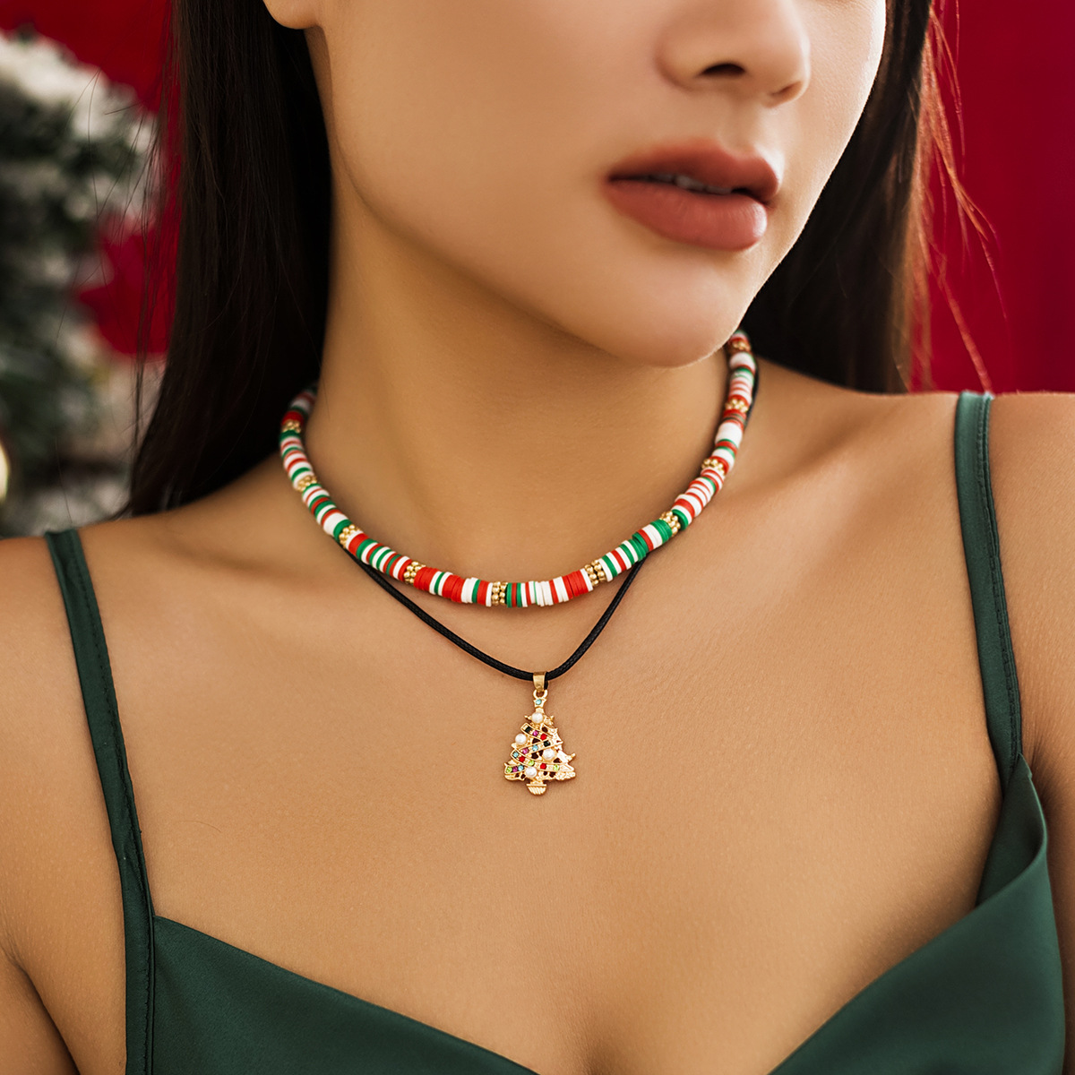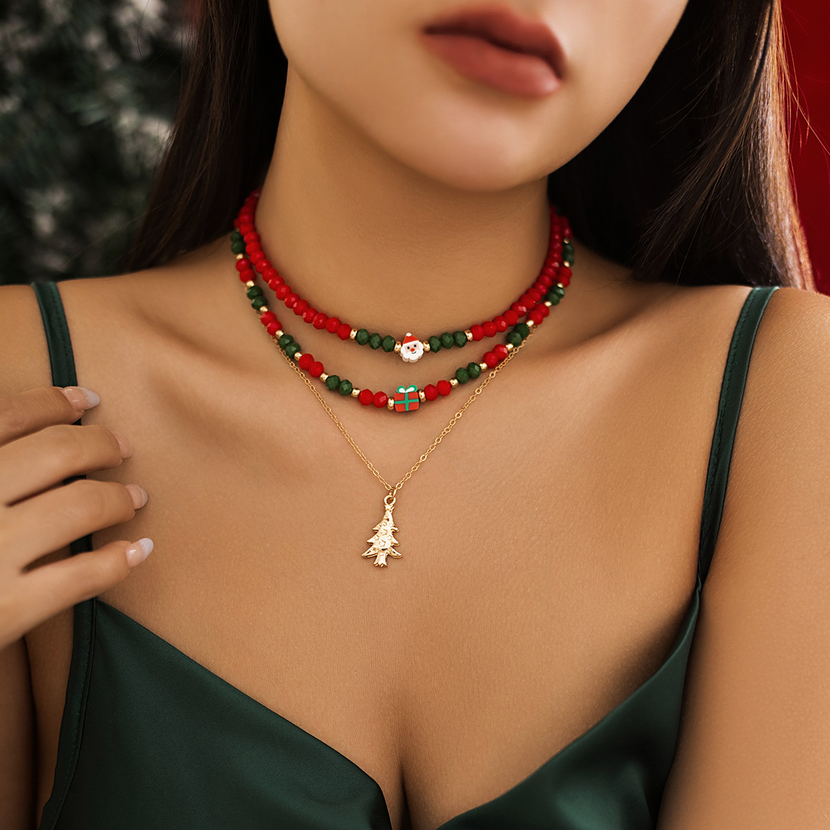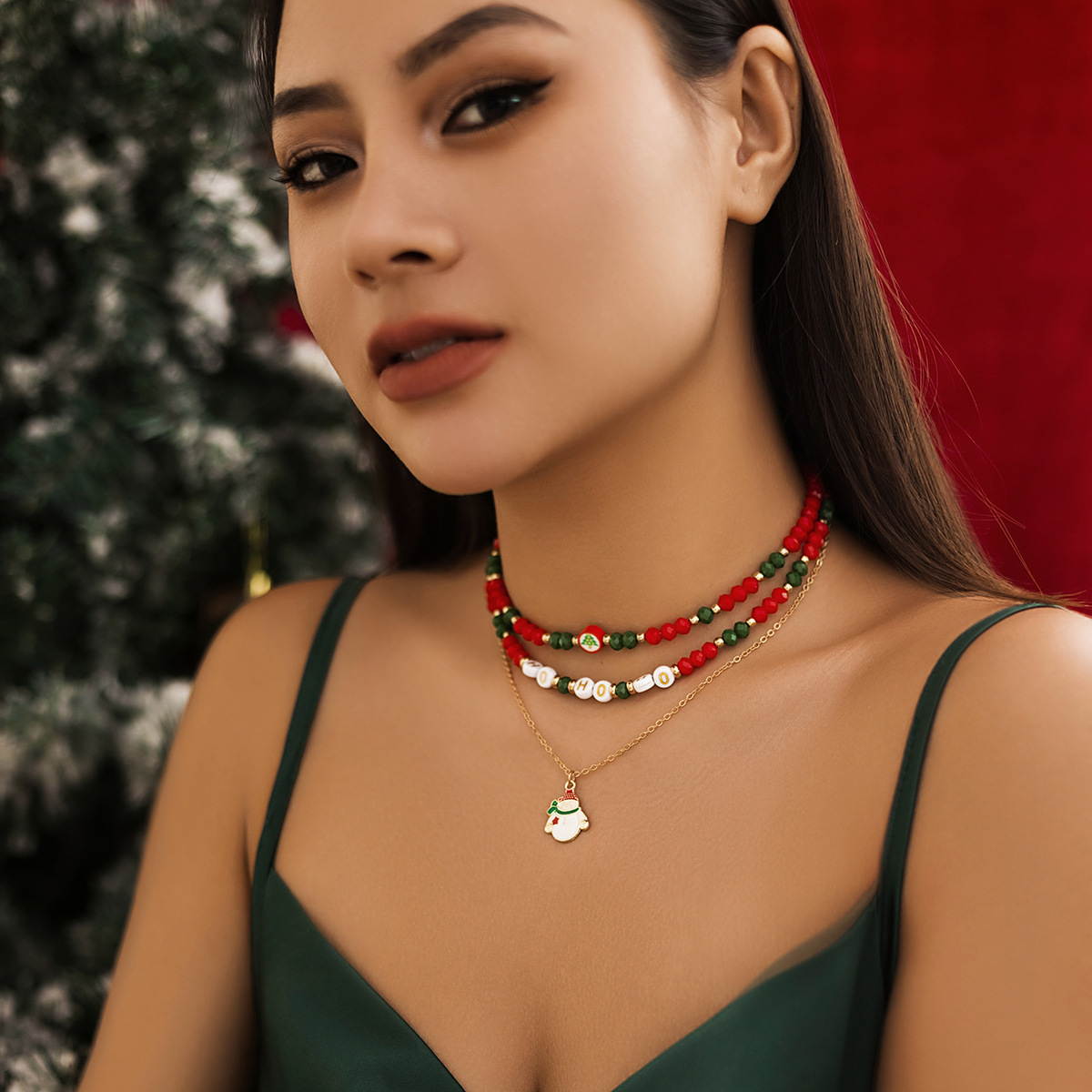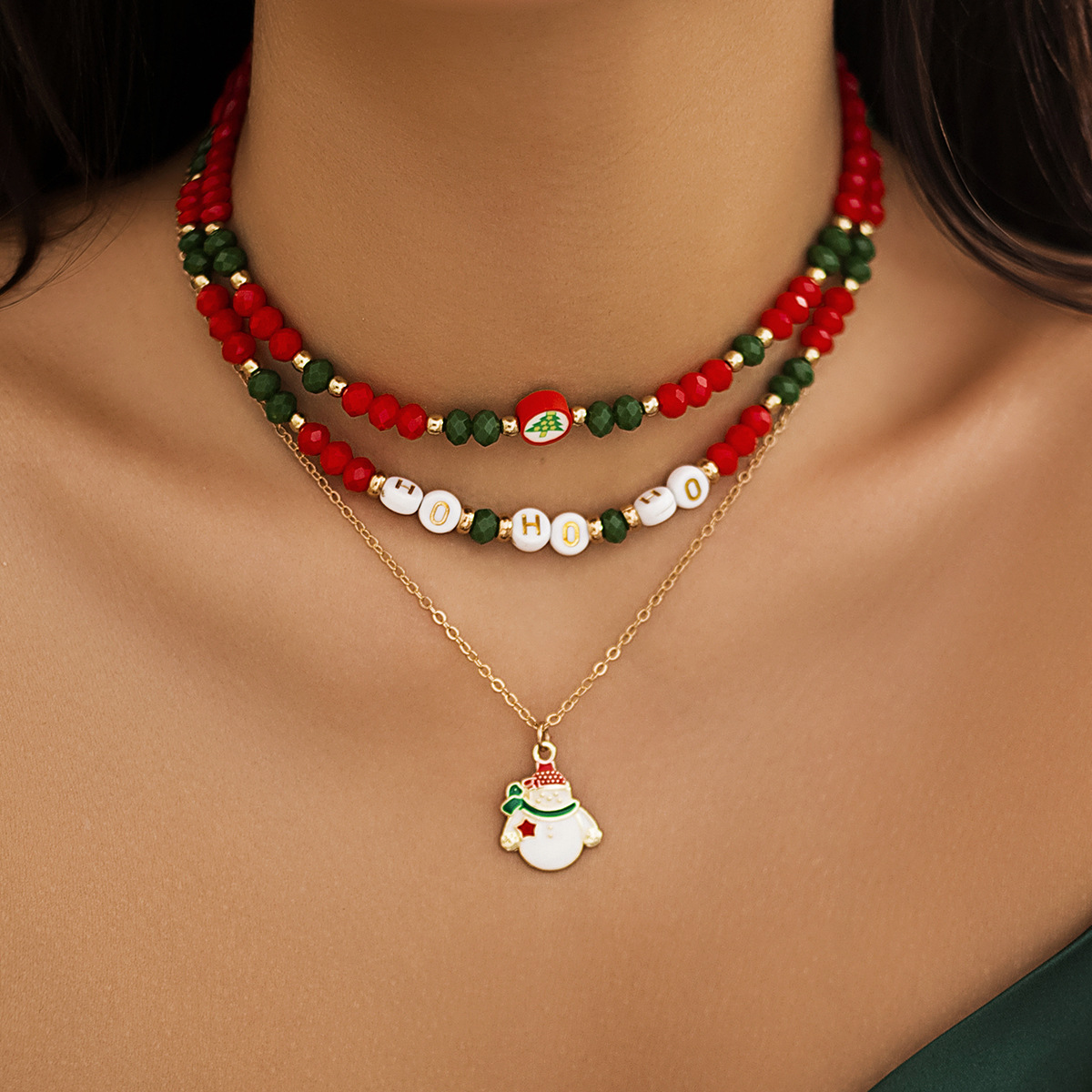 Christmas snowman gift imitation crystal necklace