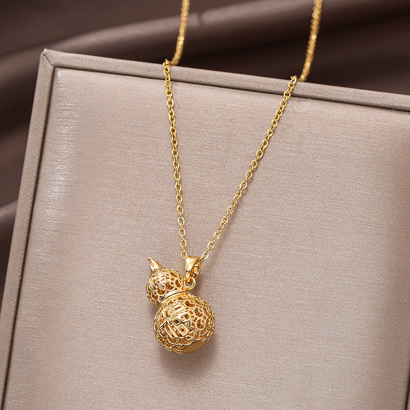 Hollow gourd titanium steel necklace