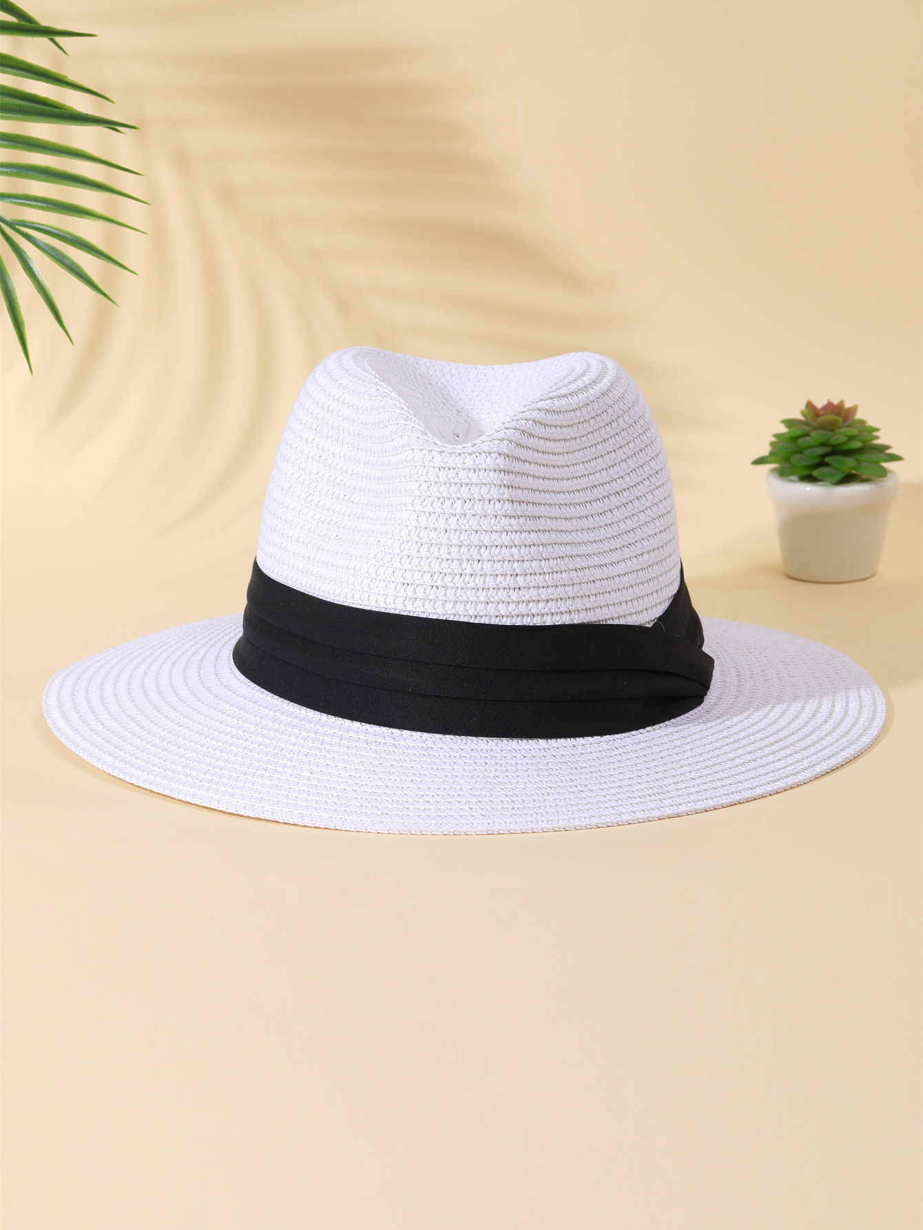 Classic Three-Fold Panama Straw Handmade Sun Hat Decorative Foldable
