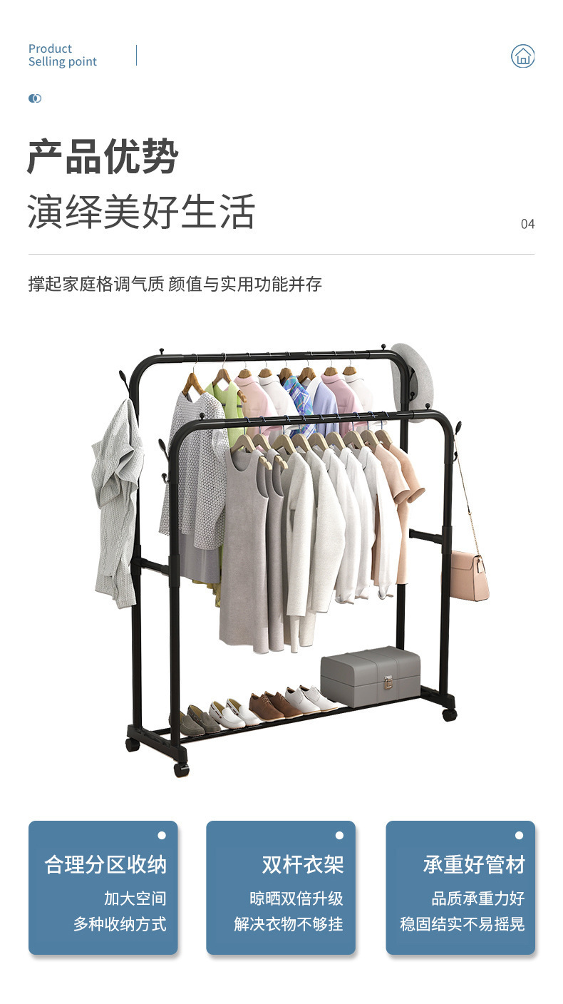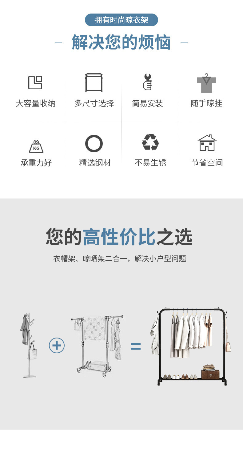 Clothes Rack Floor Standing Simple Clothes Drying Pole