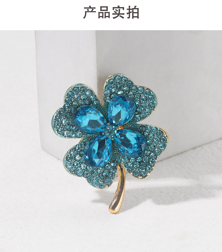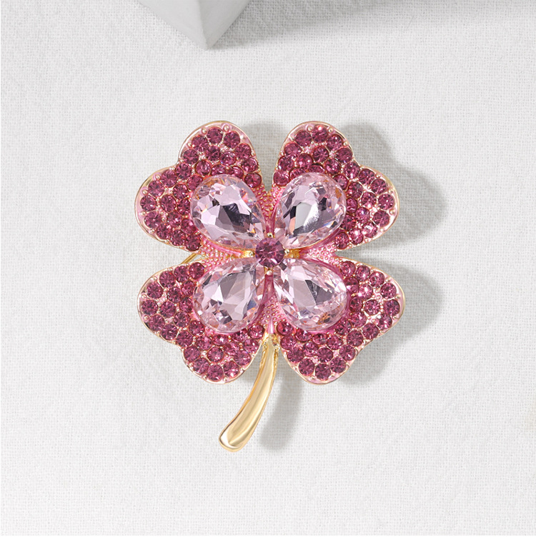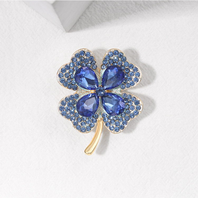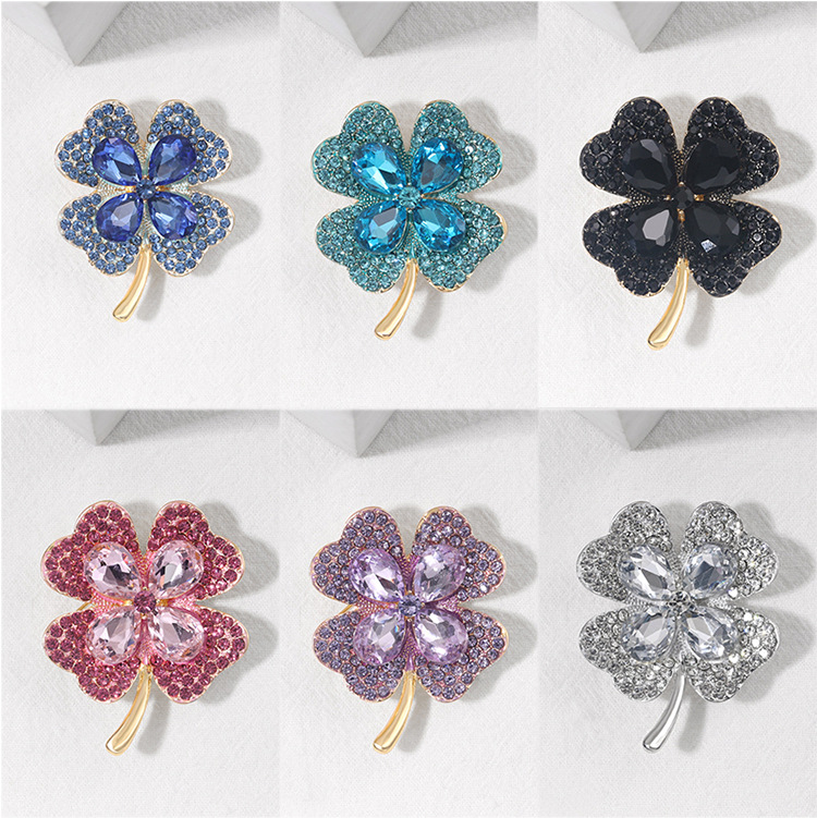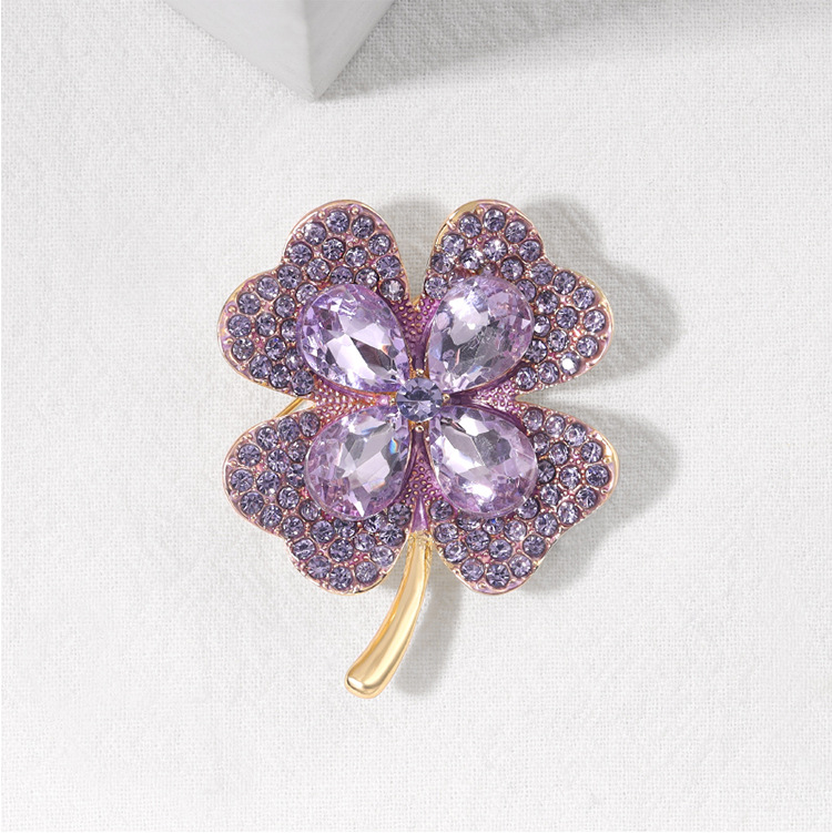 Four Leaf Clover Brooch Crystal Glass