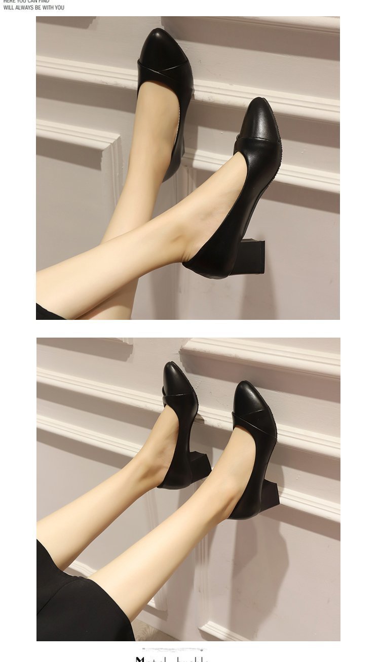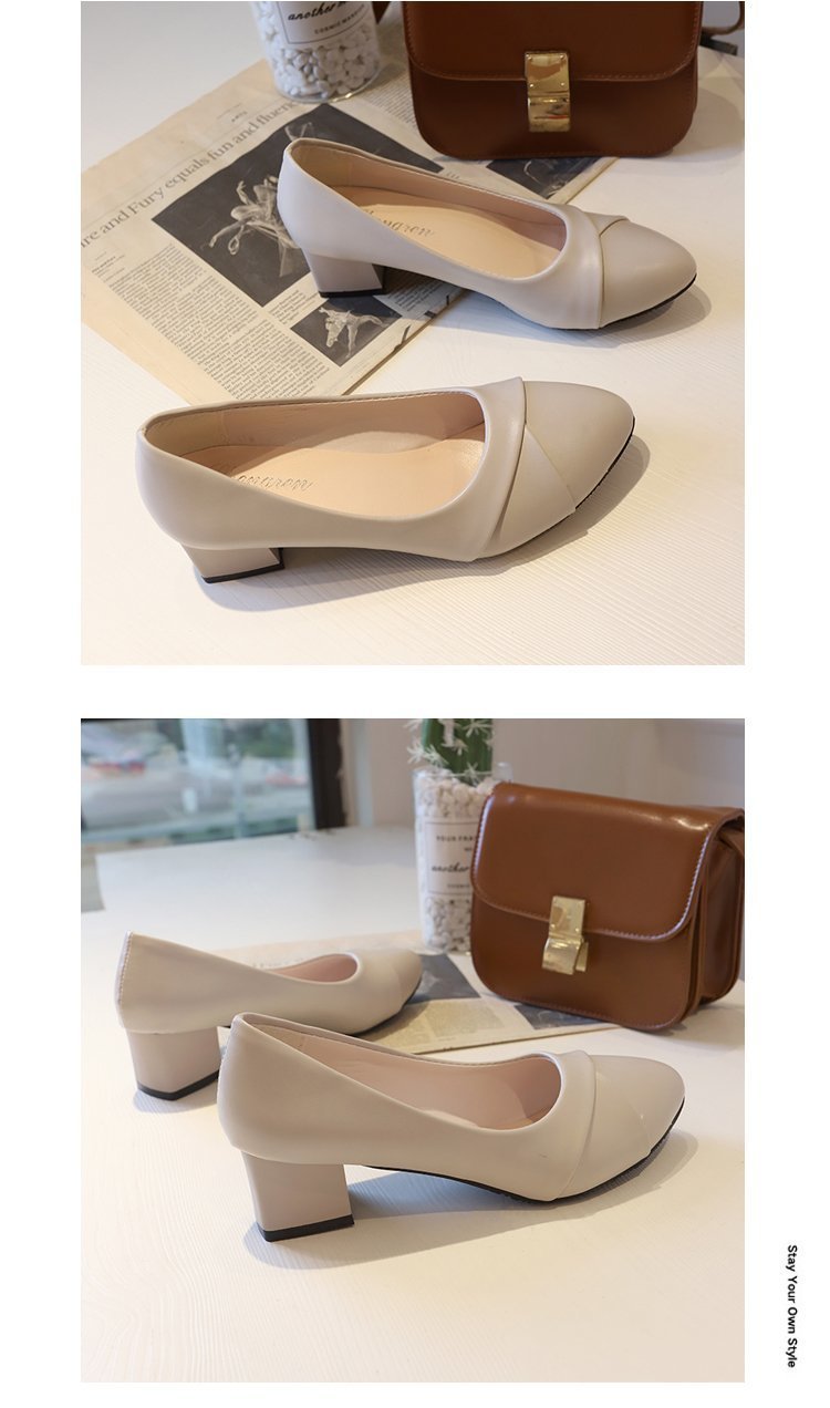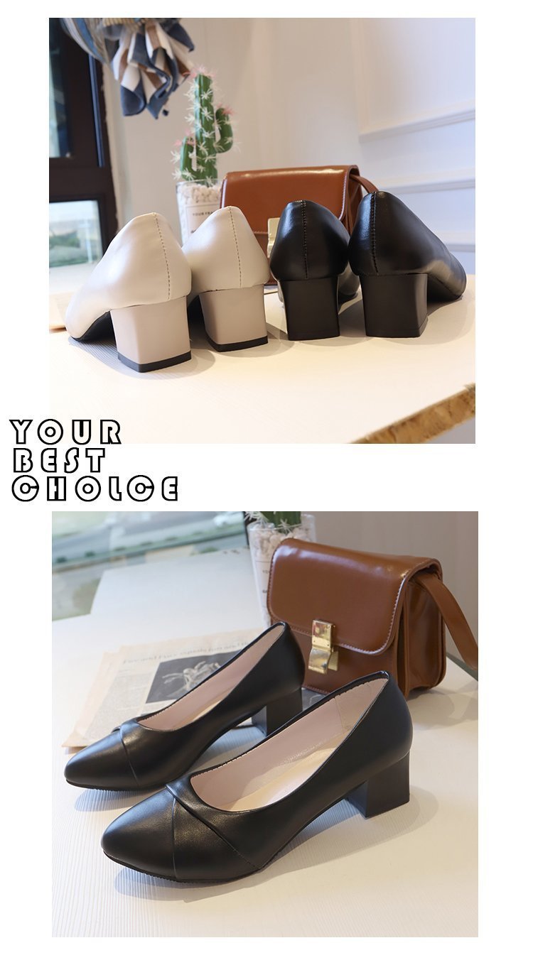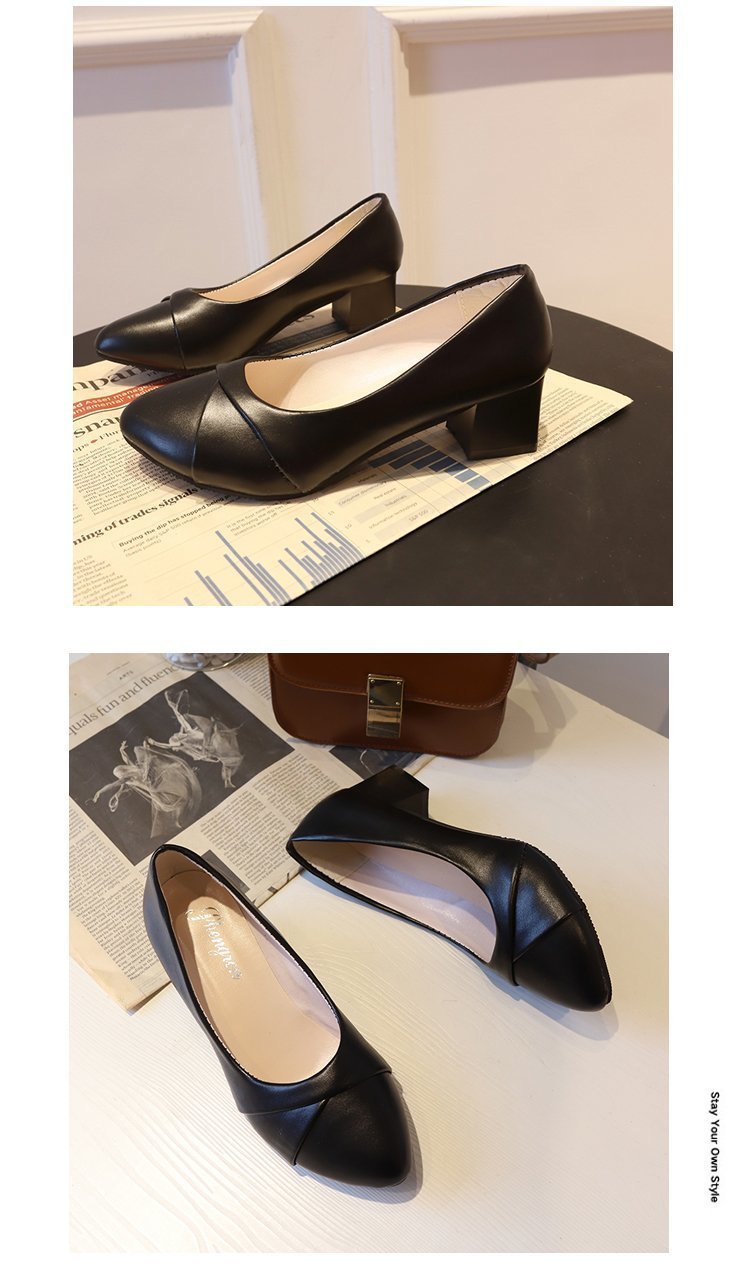 Coarse heel fashion shoes women pu leather