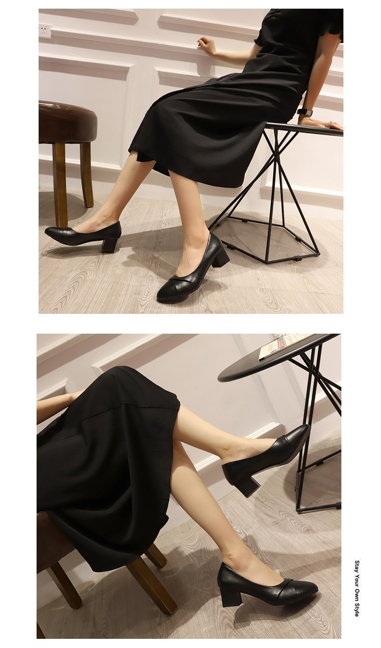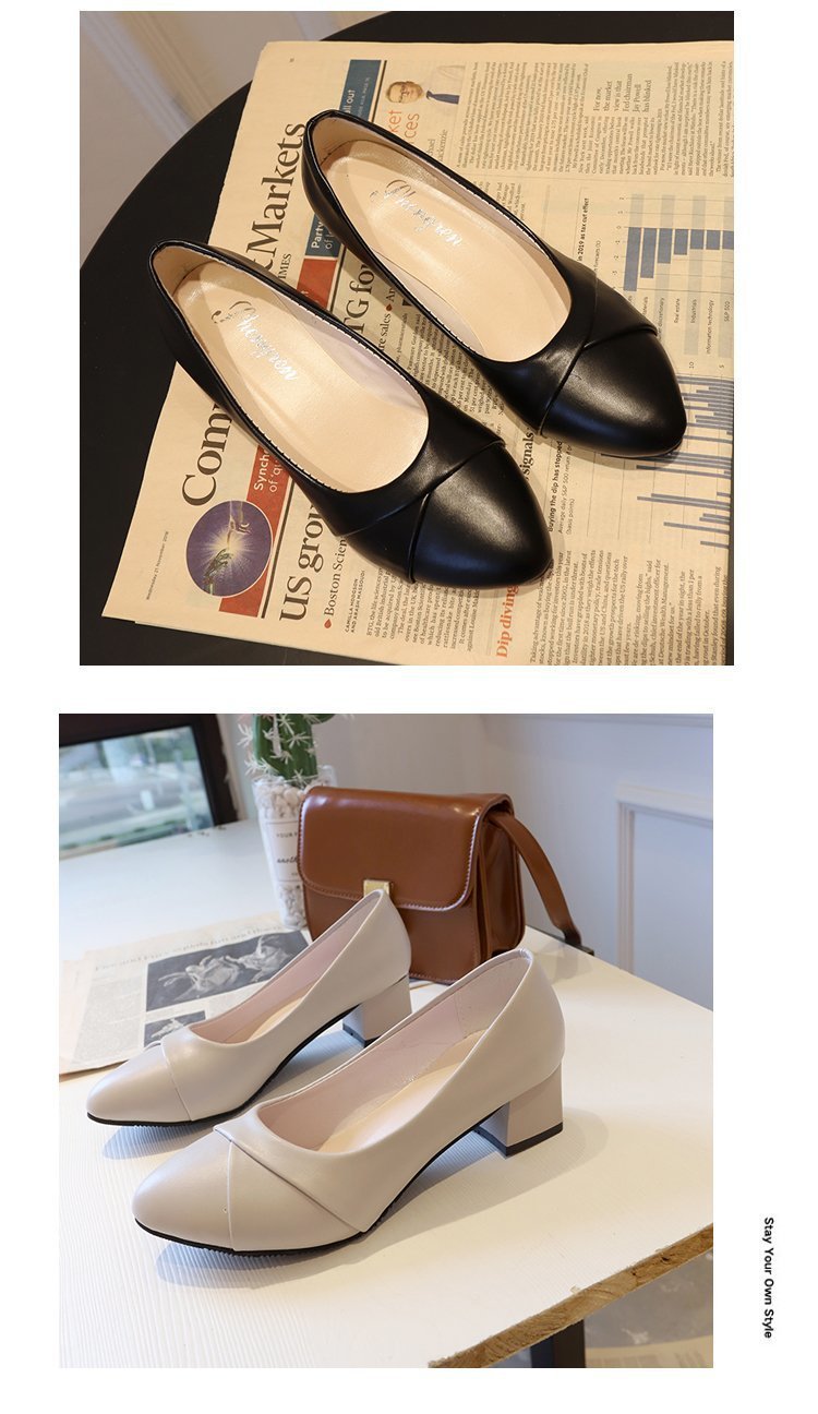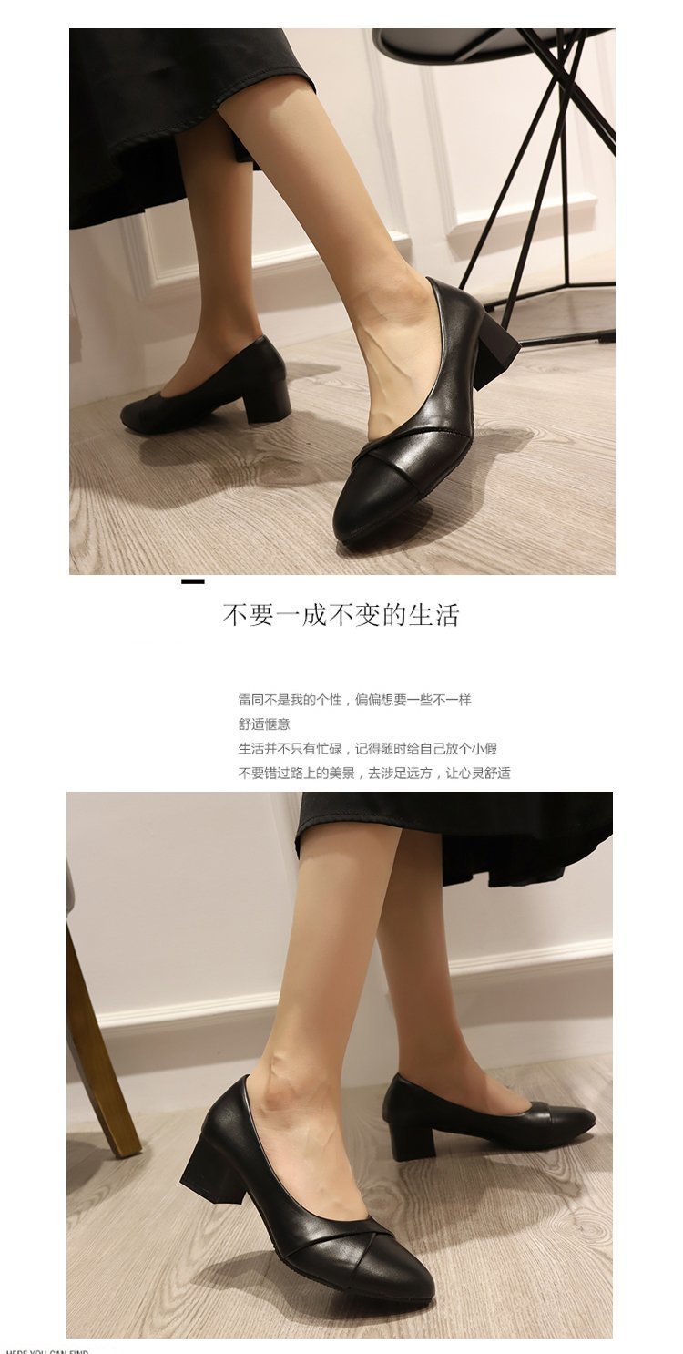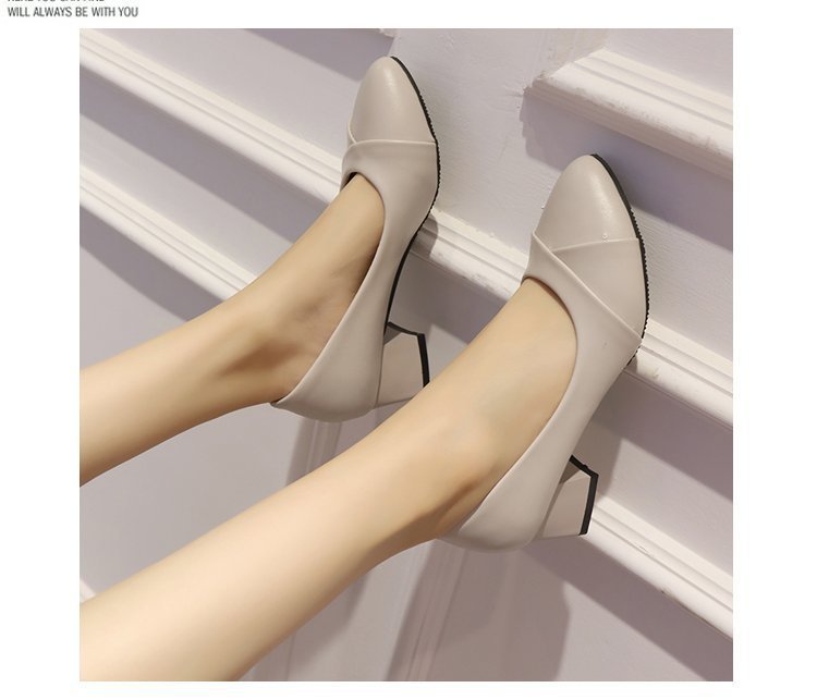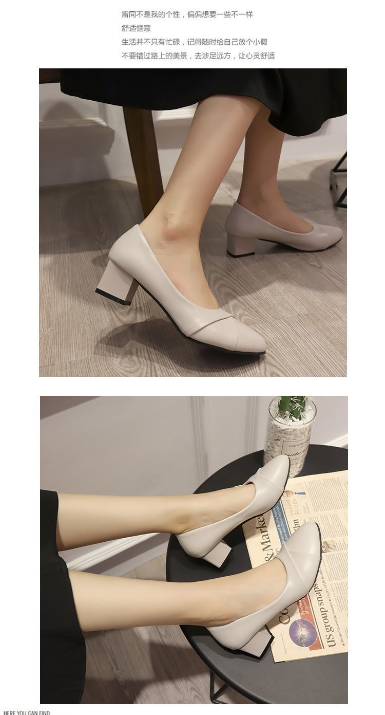 Coarse heel fashion shoes women pu leather