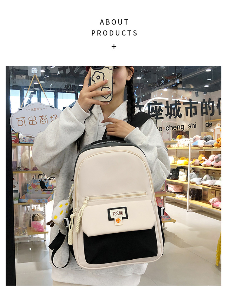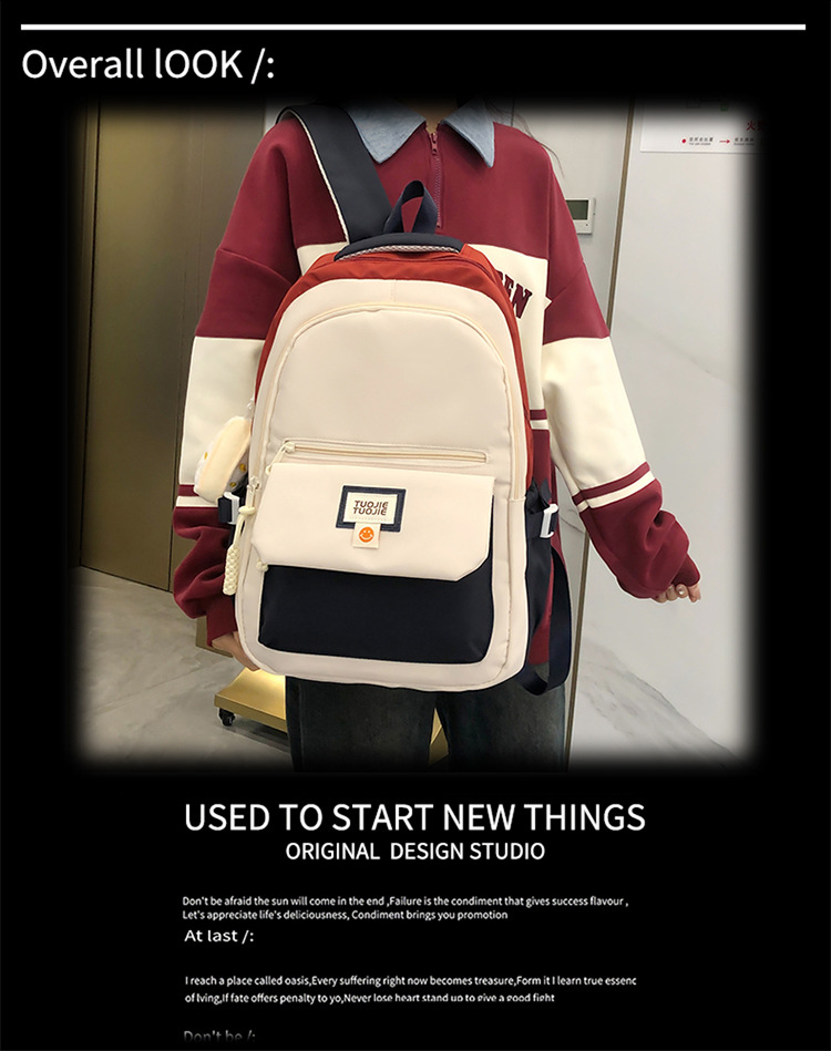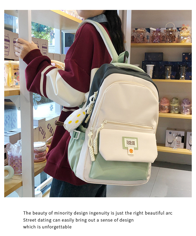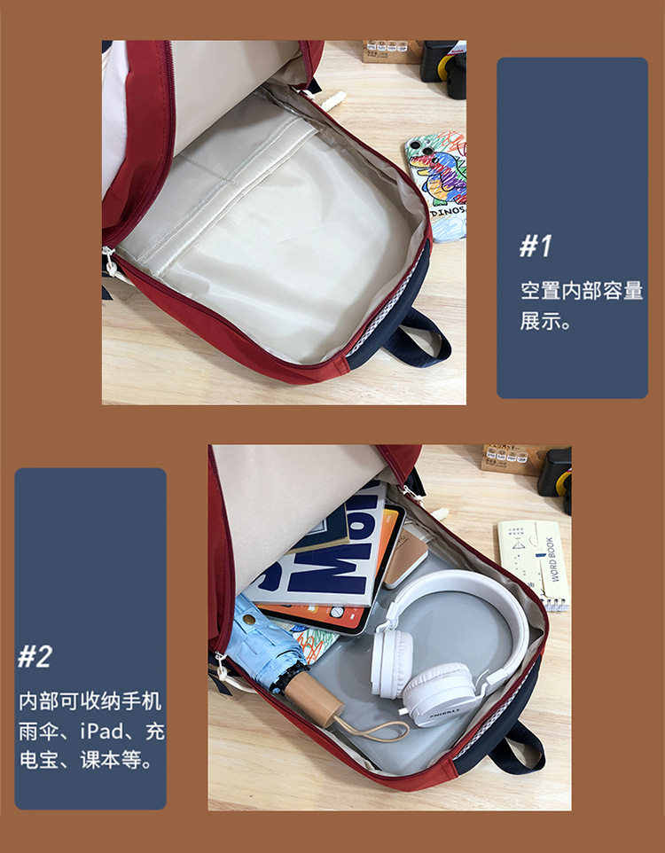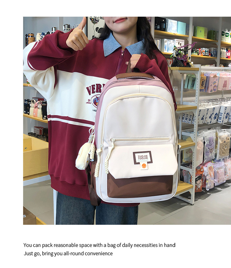 Contrast color large capacity schoolbag, student backpack