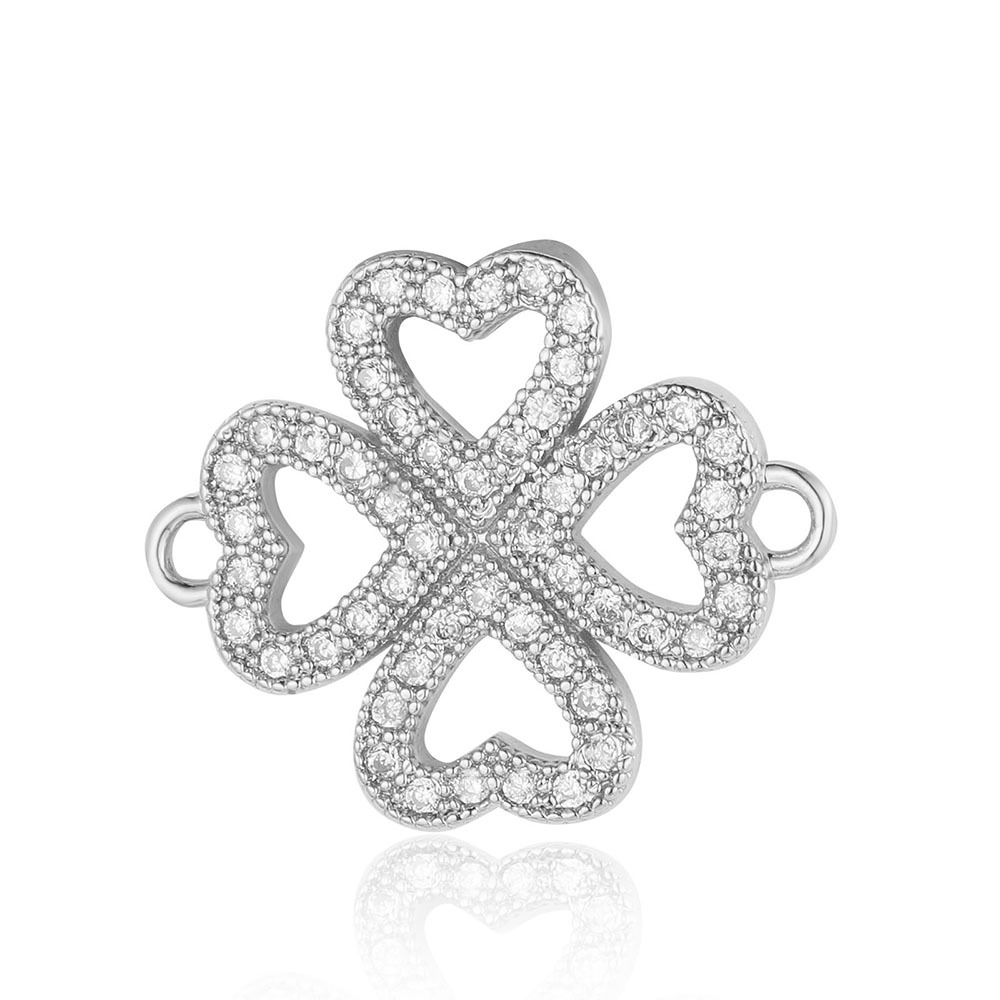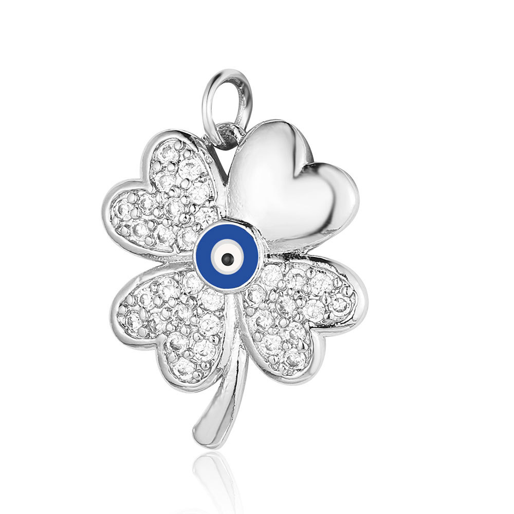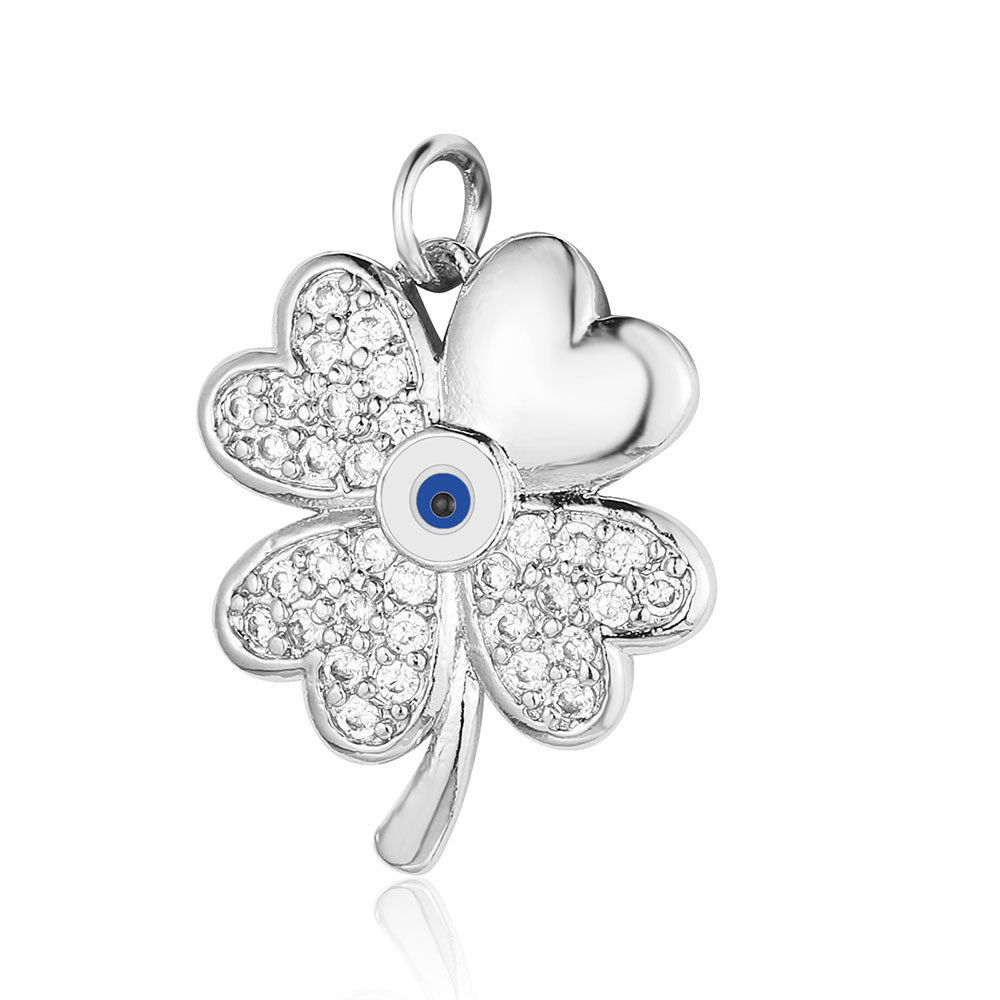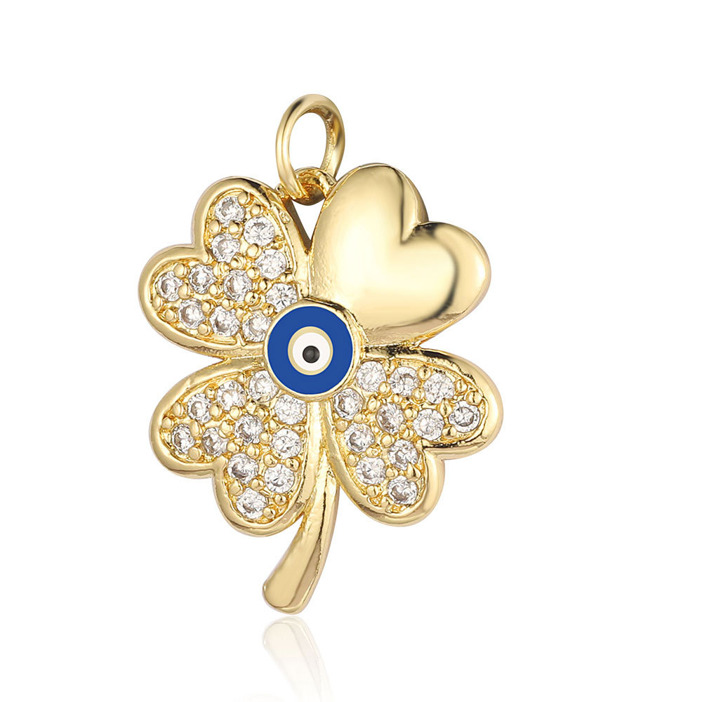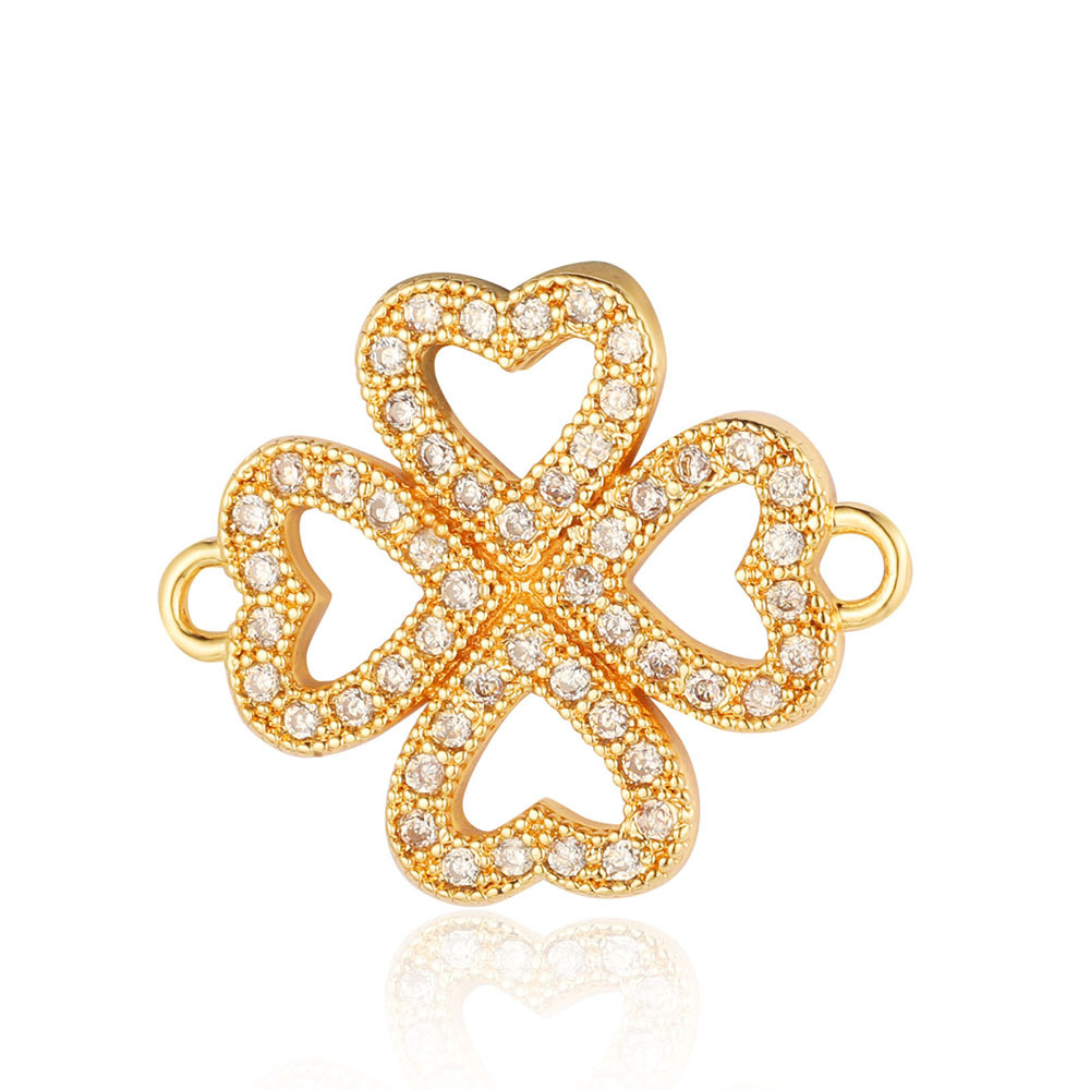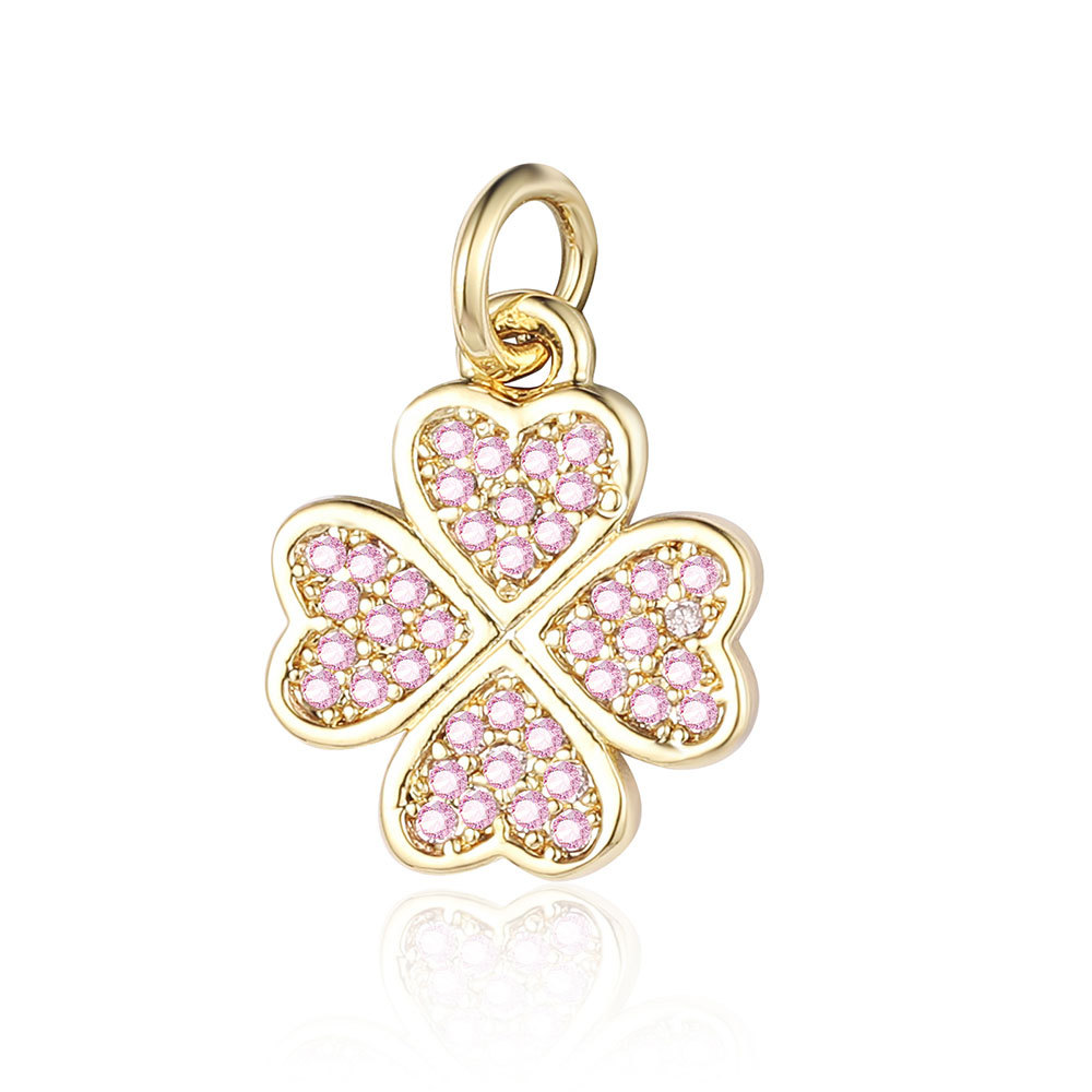 Copper inlaid zircon DIY four-leaf clover pendant.
