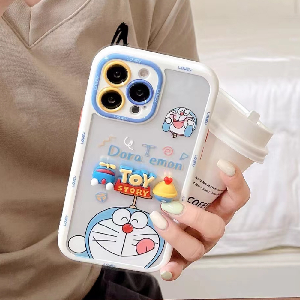 Cream Case iPhone15 Pro X Frog Flower Doraemon Pendant Cover