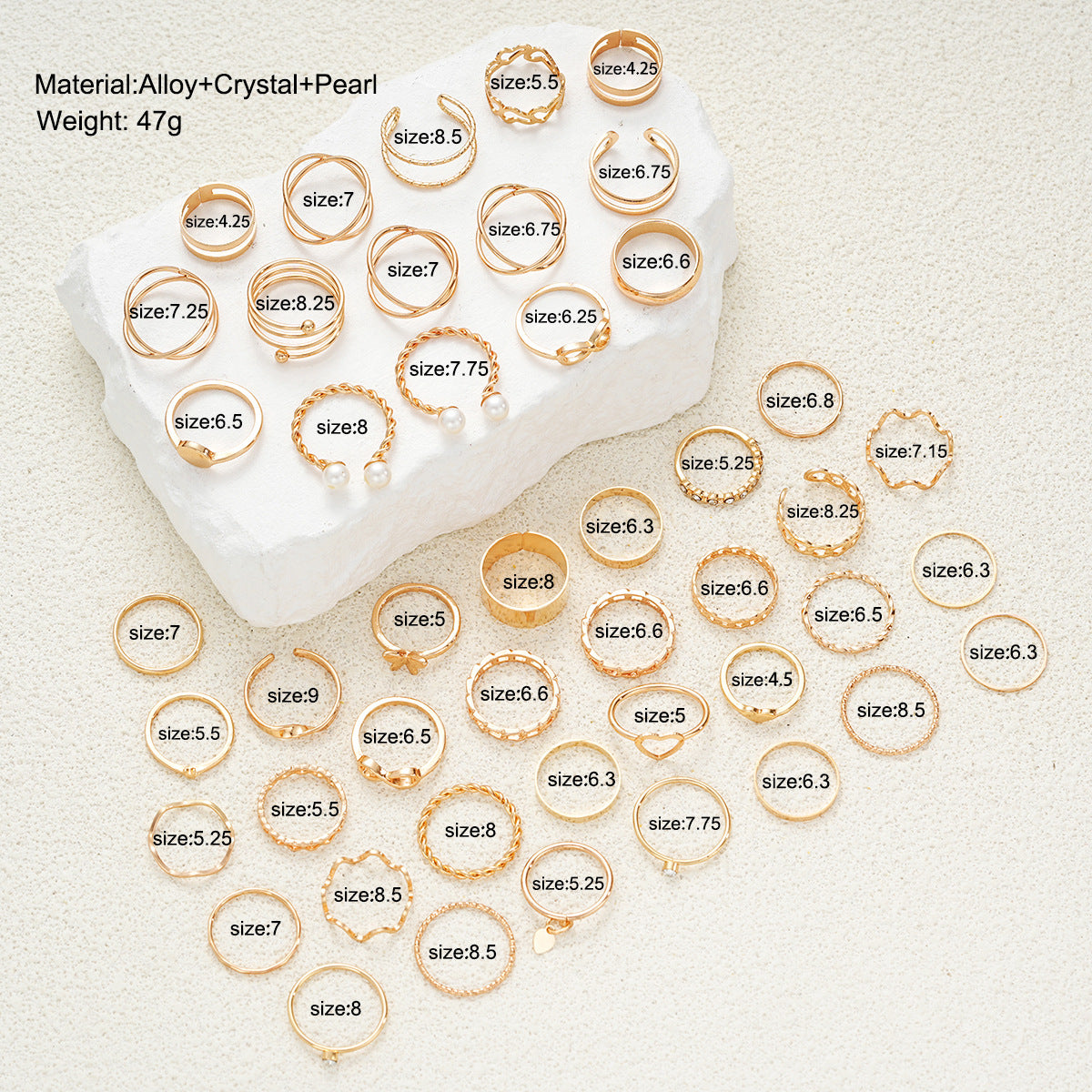 Hollow heart spiral 8-shaped ring 46-piece set